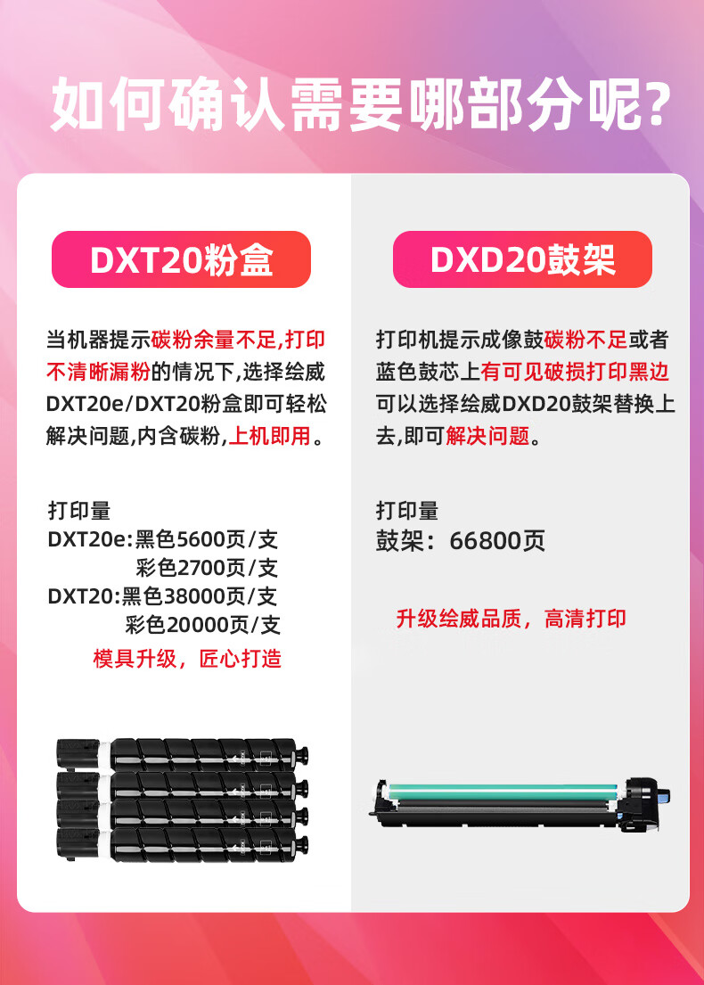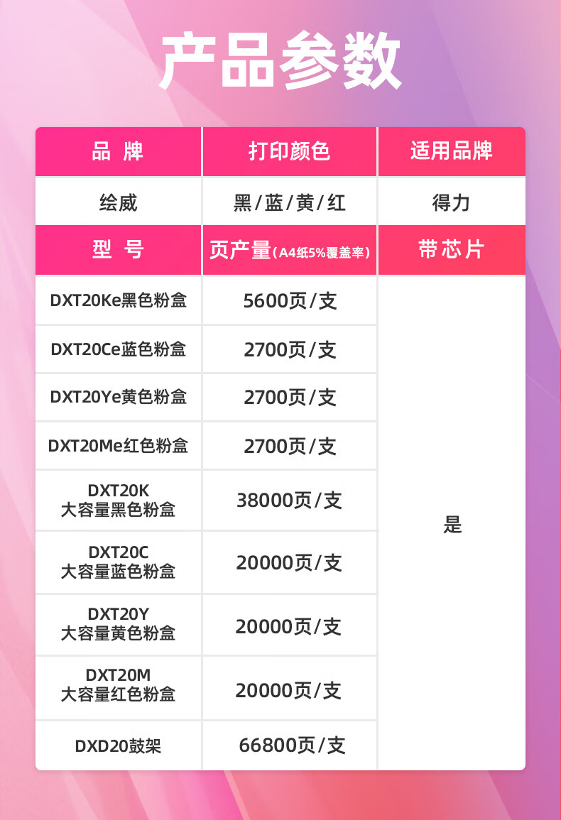 绘威DXT20四色大容量粉盒套装 适用得力Deli M201CRx打印机复印机墨粉盒 墨盒 硒鼓 碳粉