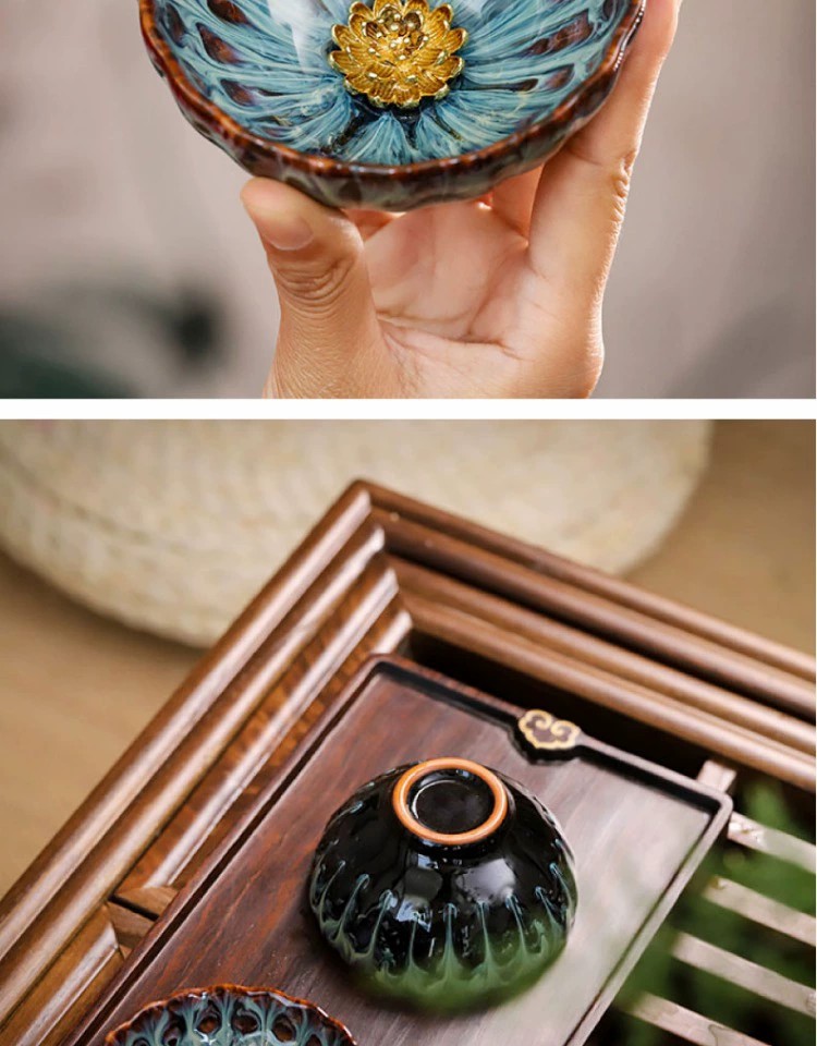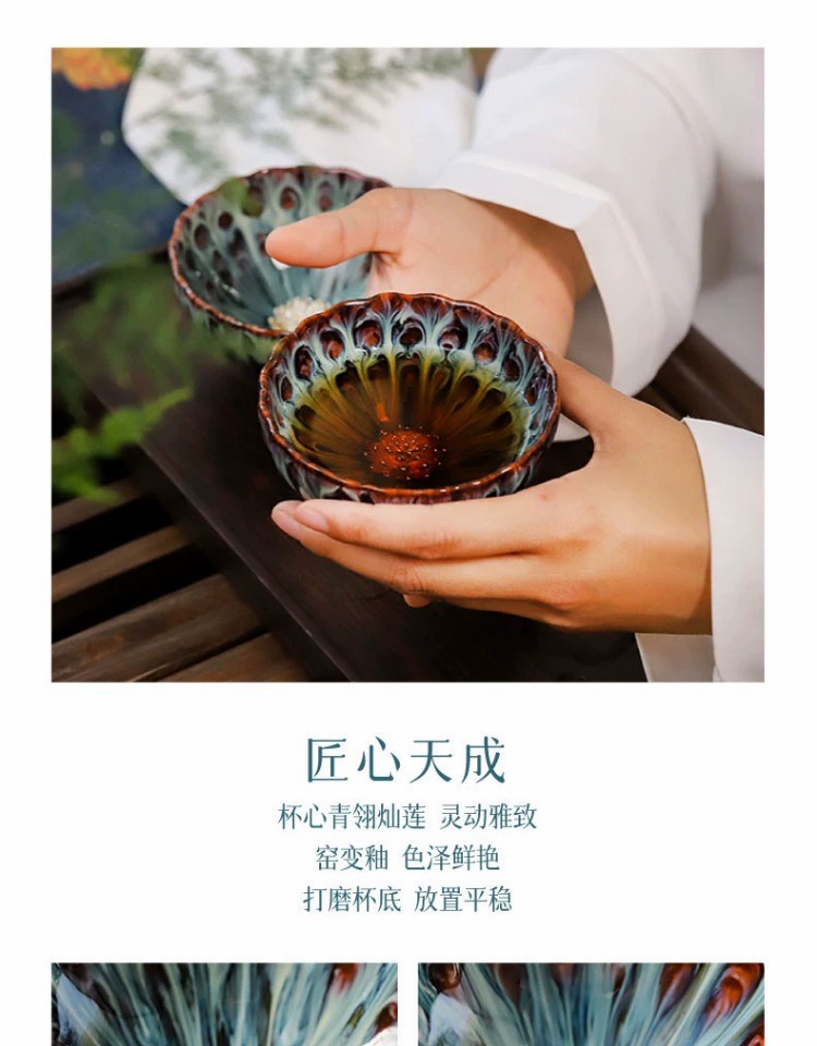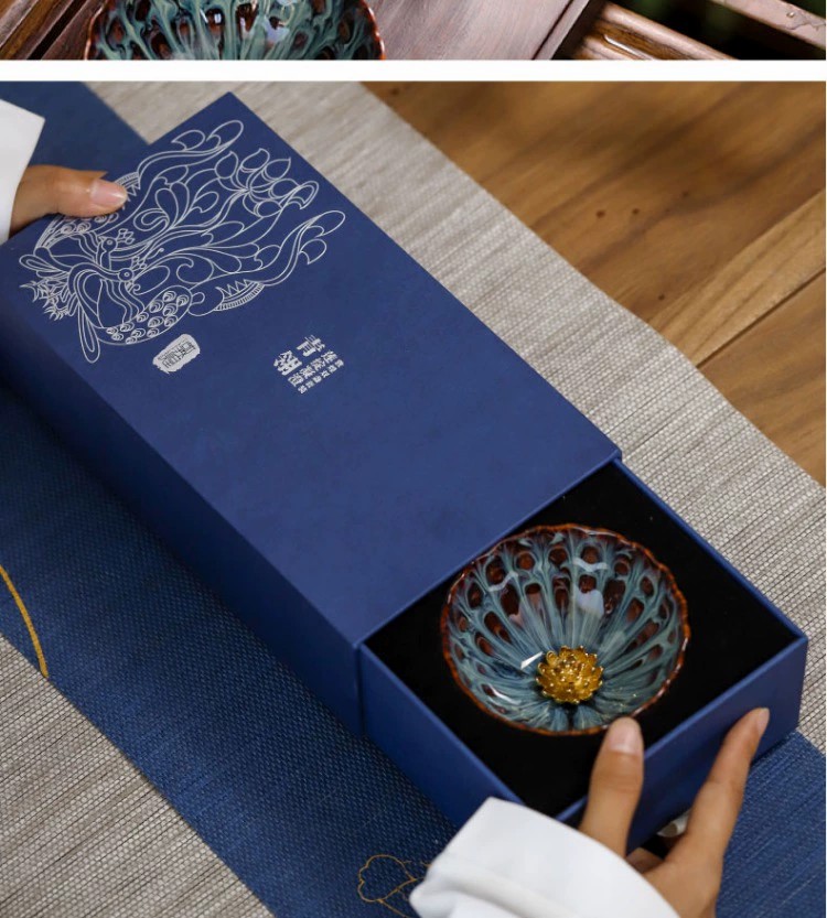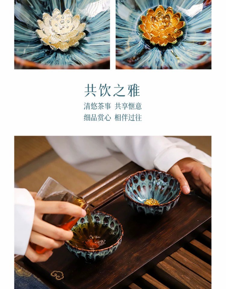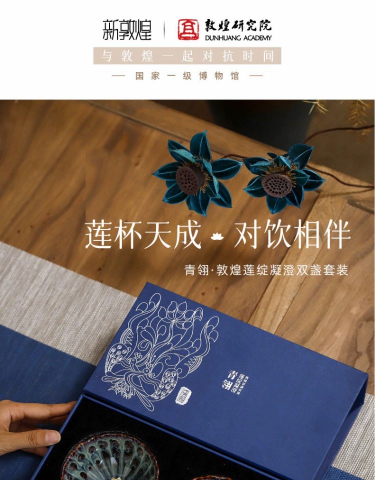 【父亲节礼物】敦煌研究院 莲绽凝澄双盏套装 创意对杯茶具情侣结婚礼物实用