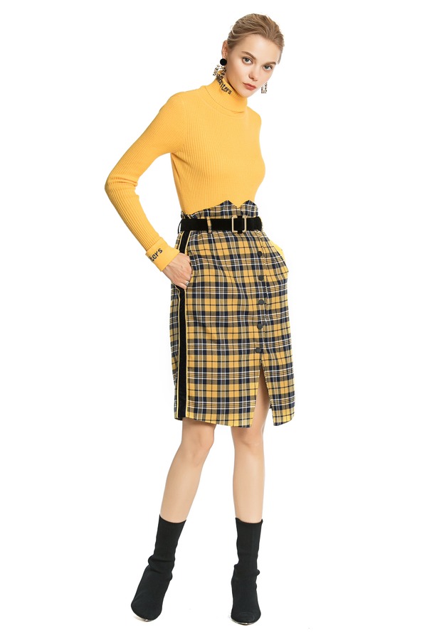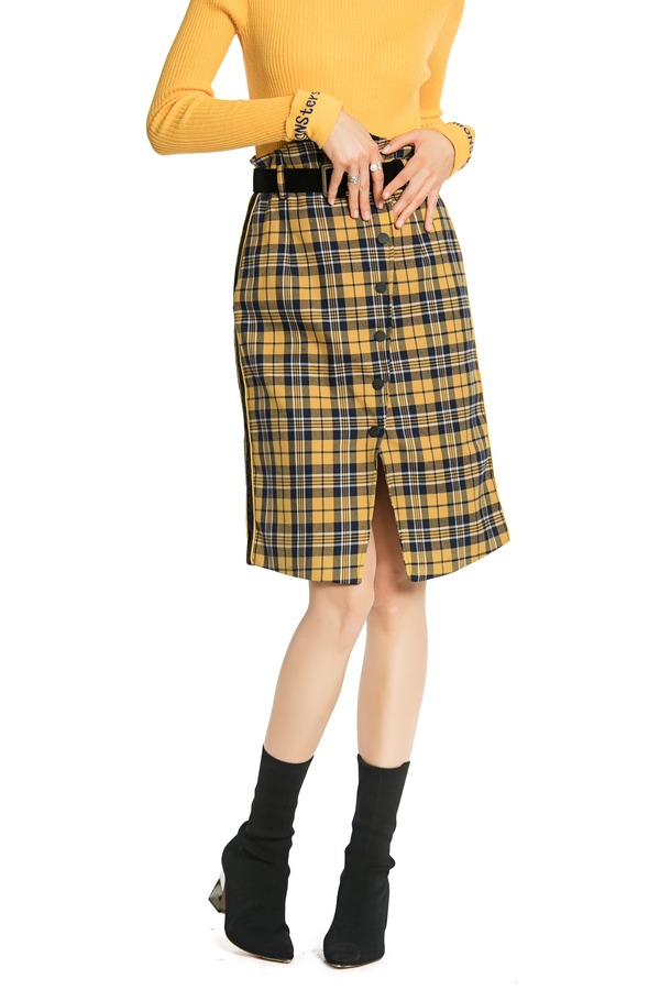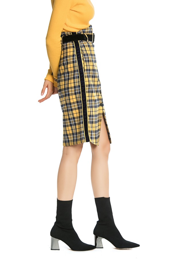MODERN SHOW 黄色格纹信封裙 4401