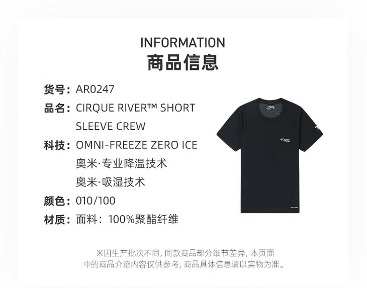 哥伦比亚钛金系列-女式冰感速干短袖T恤AR0247