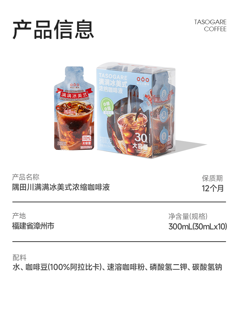 隅田川满满冰美式咖啡冷萃超浓缩咖啡液0糖0脂学生提神大容量30mL
