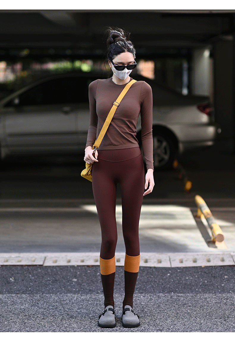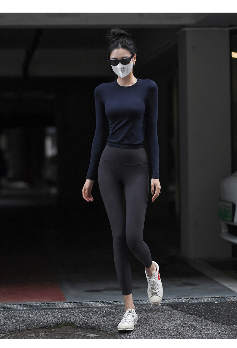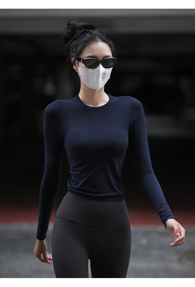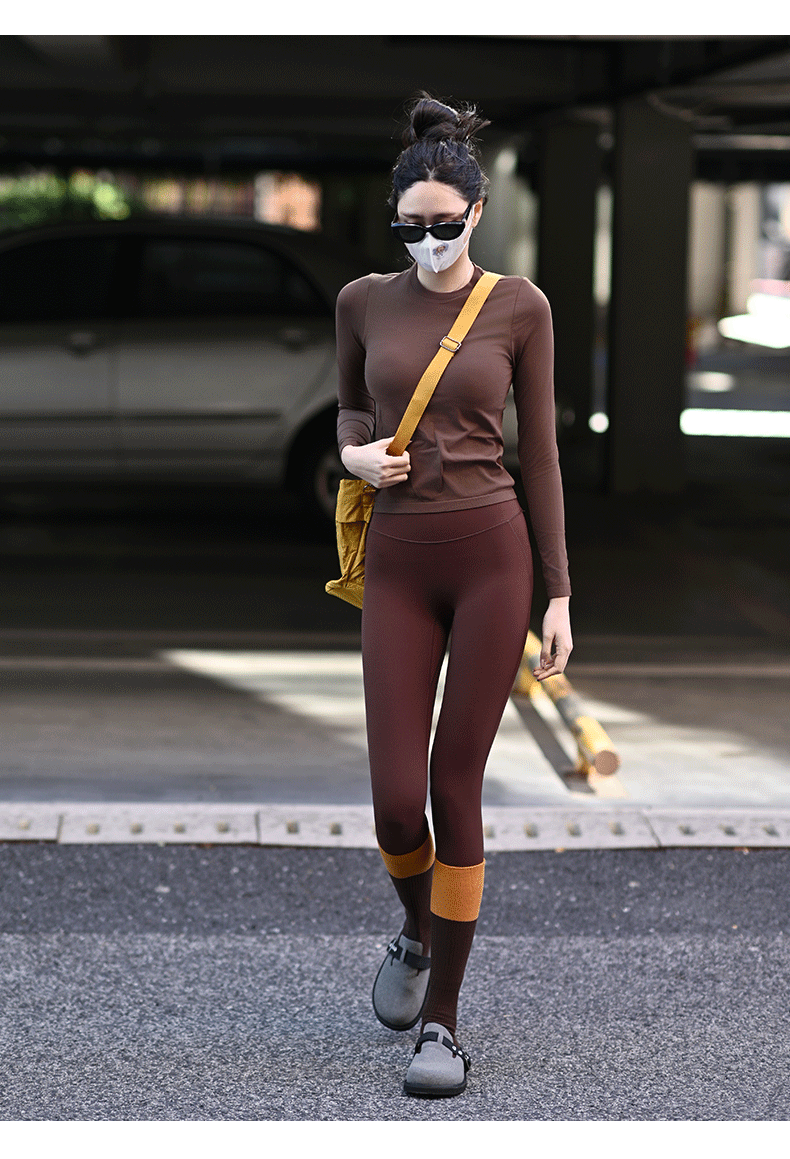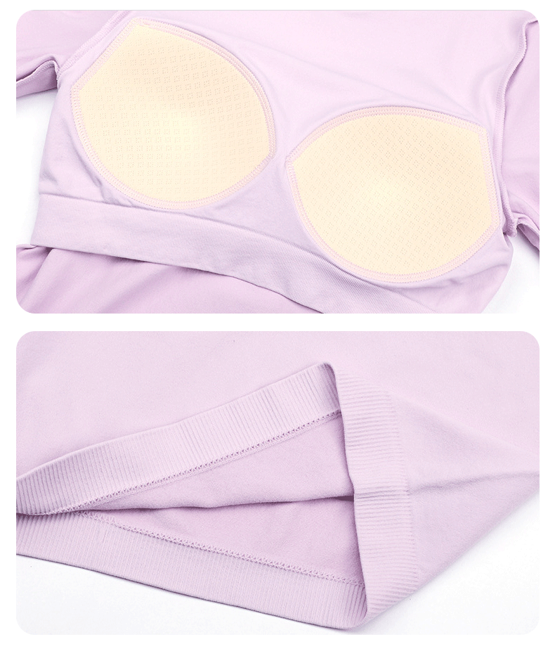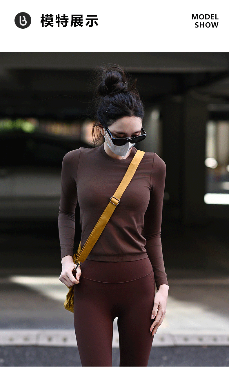 Beemen无缝一体织固定杯瑜伽服上衣秋冬季打底运动长袖