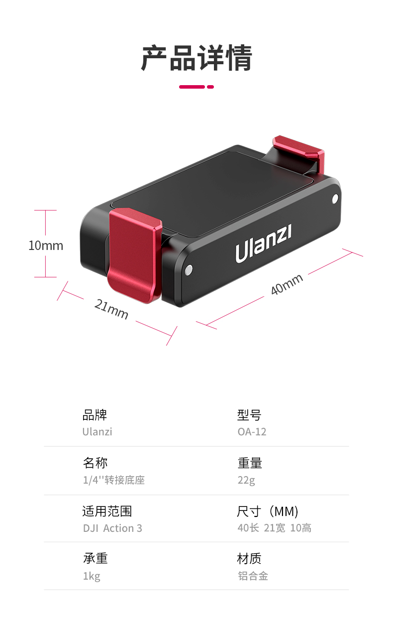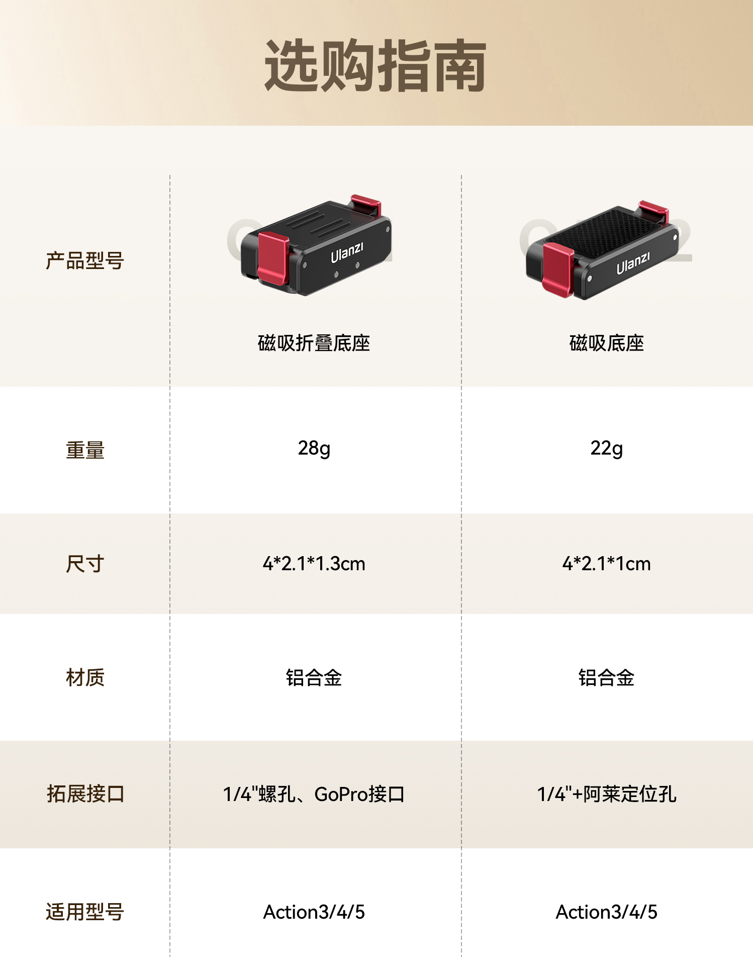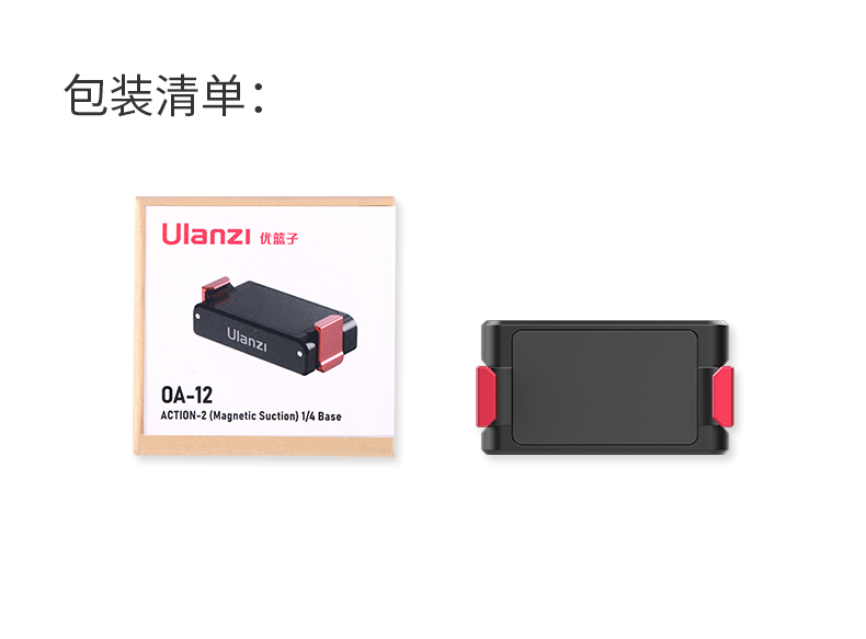 Ulanzi优篮子OA-12运动相机磁吸底座适用大疆Action3/4灵眸osmo快装配件折叠1/4口转gopro接口支架拓展配件