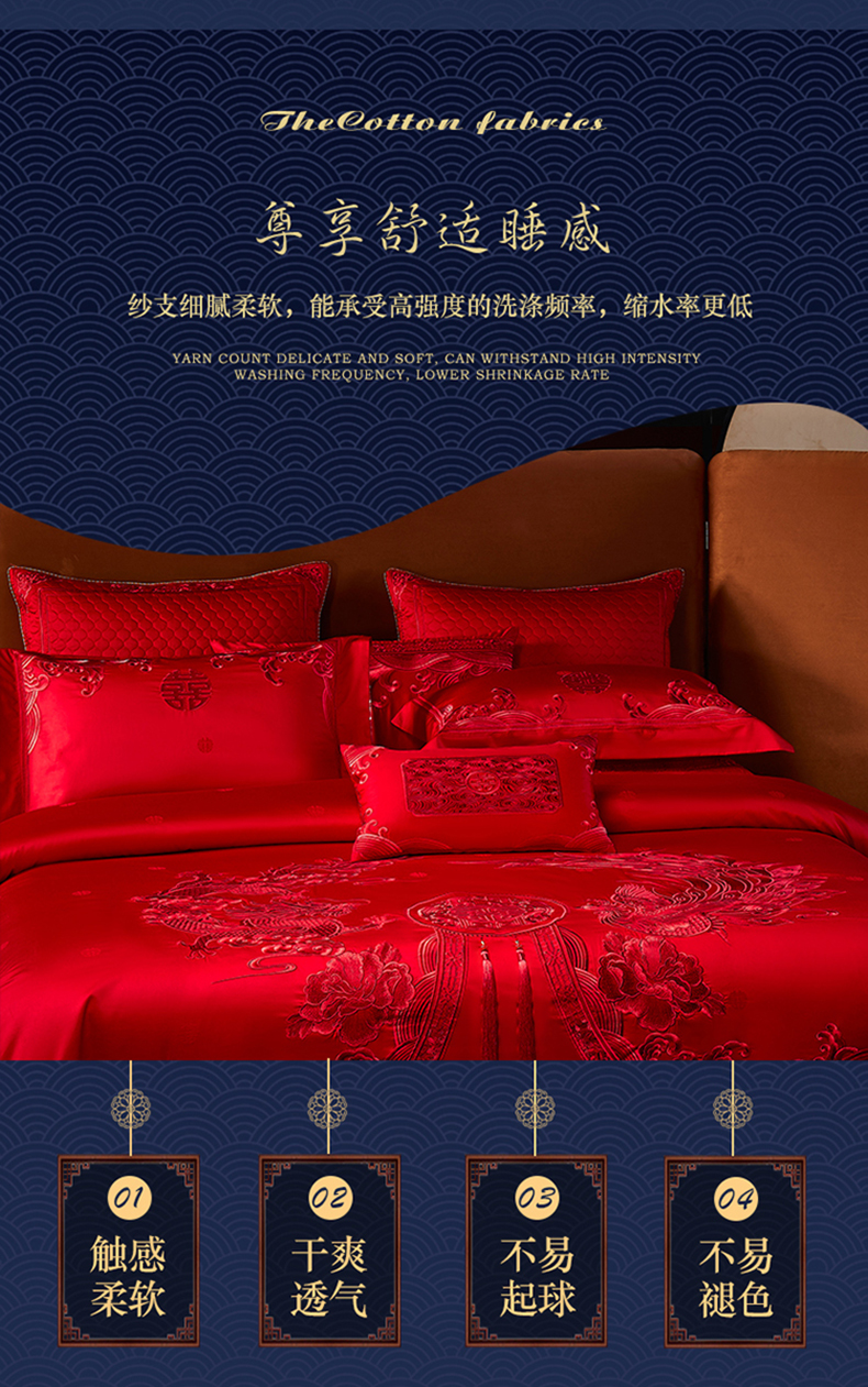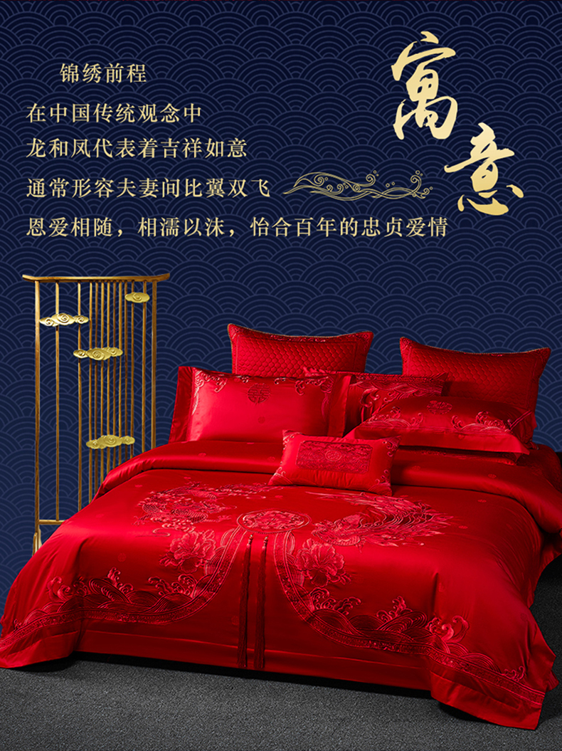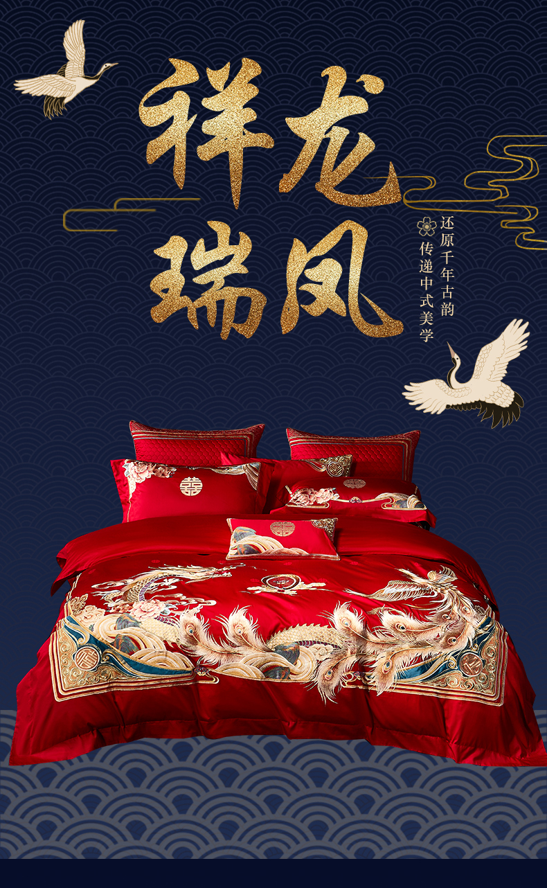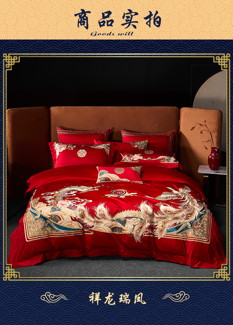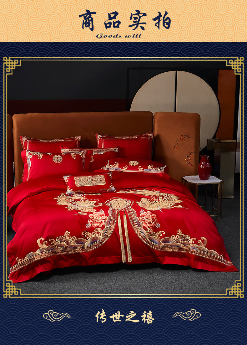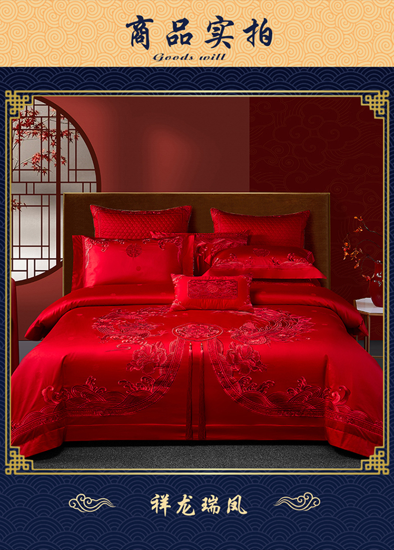 自然醒160支长绒棉提花尊享系列婚庆多件套中式传统婚庆全棉床单四件套龙凤床盖被套床上用品GDS