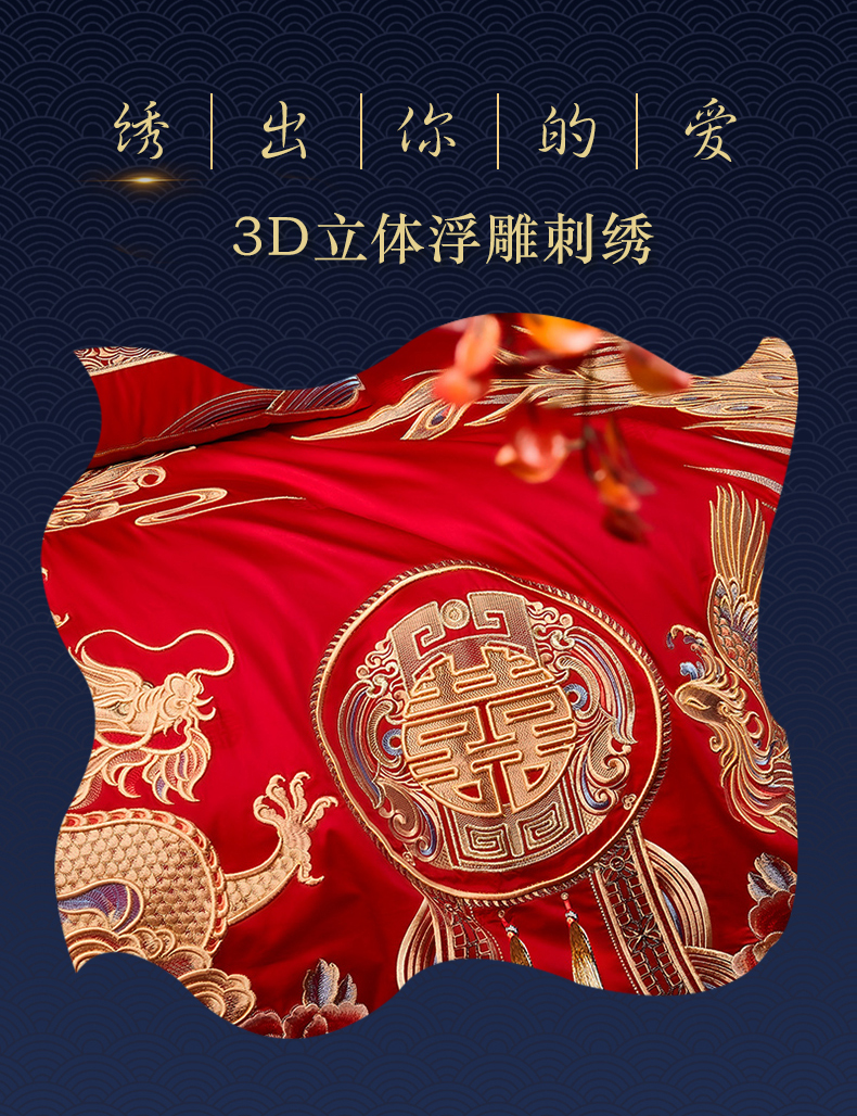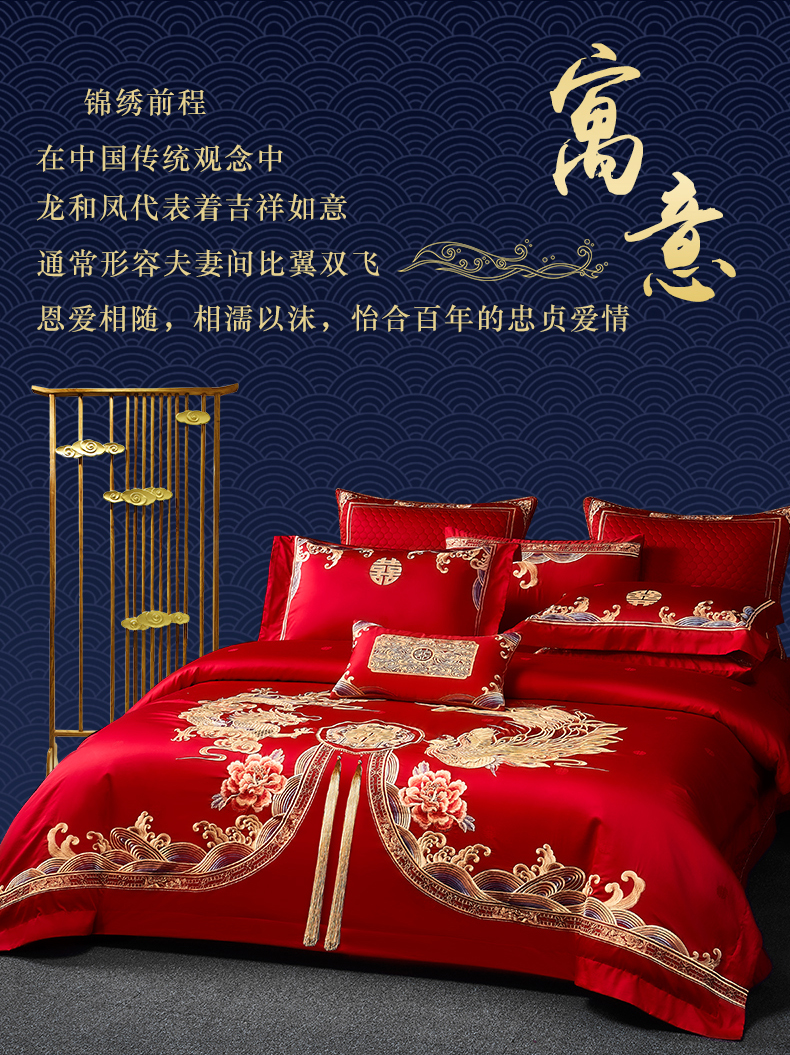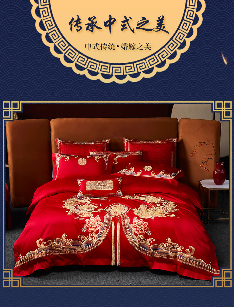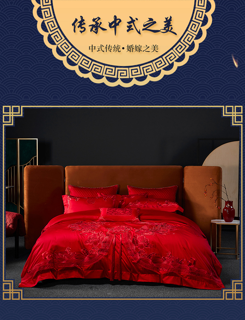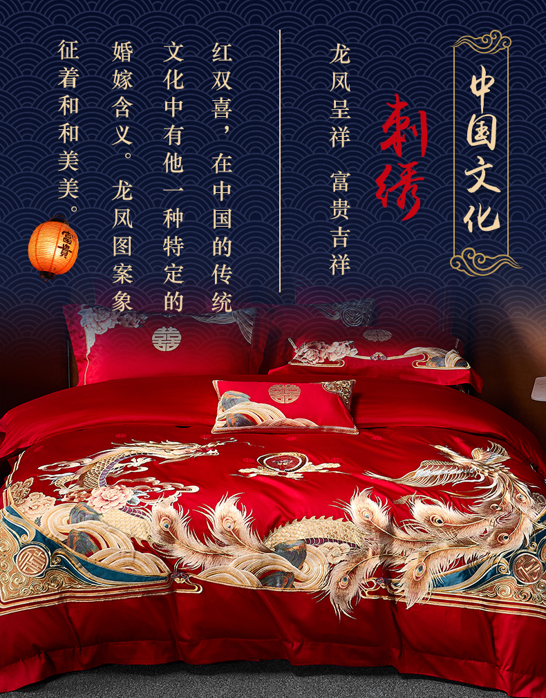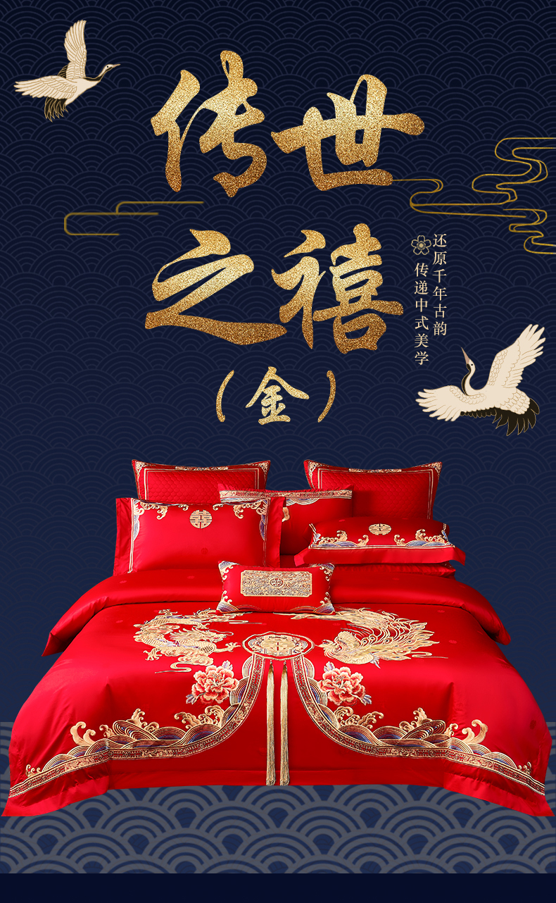 自然醒160支长绒棉提花尊享系列婚庆多件套中式传统婚庆全棉床单四件套龙凤床盖被套床上用品GDS