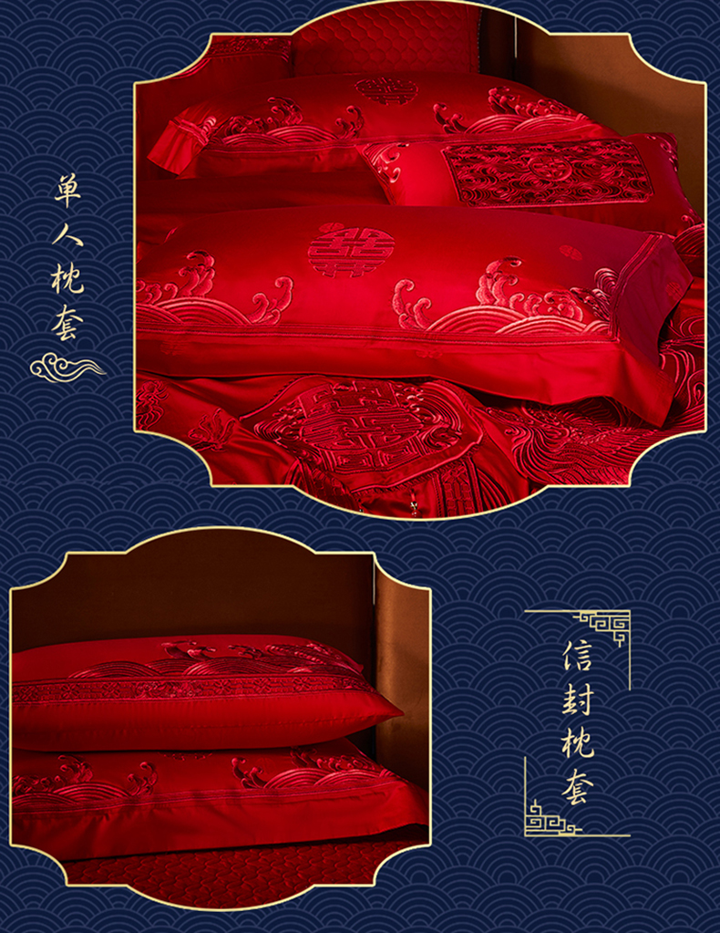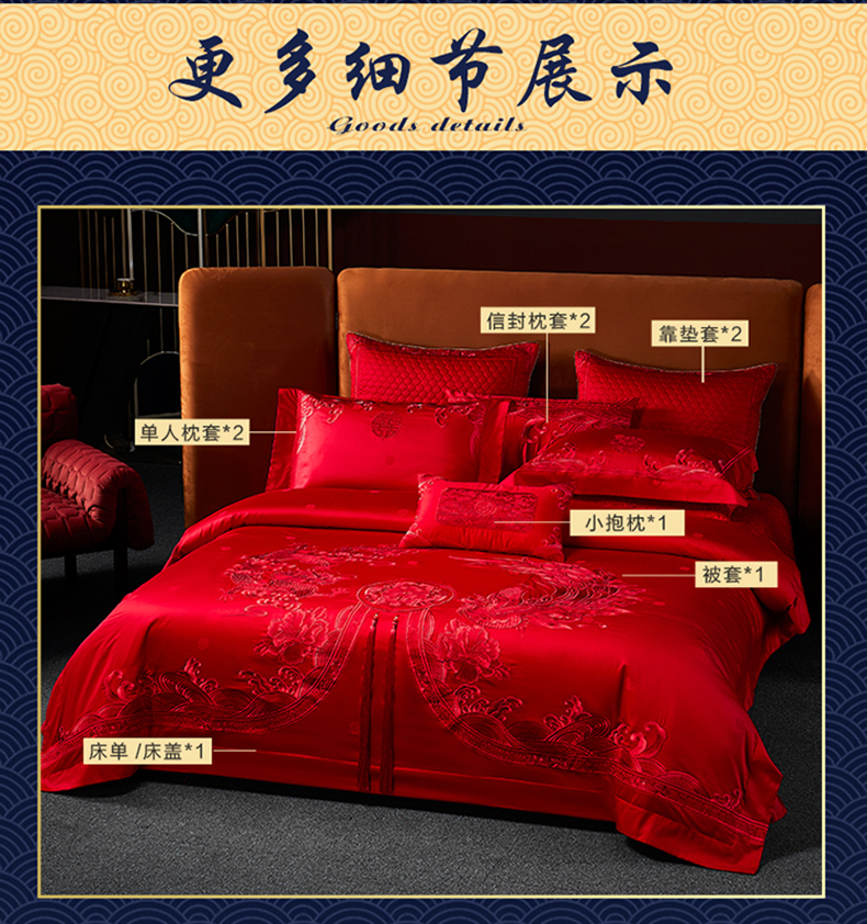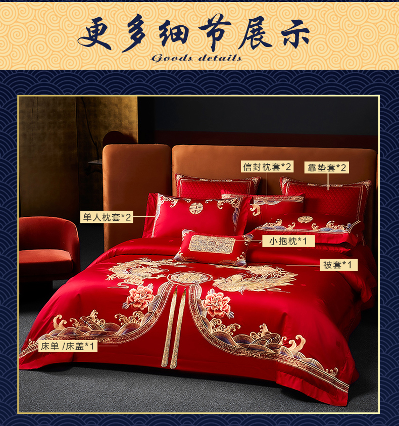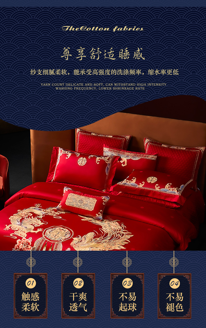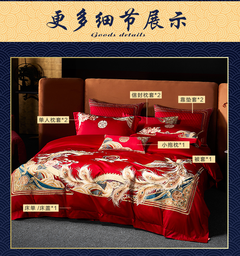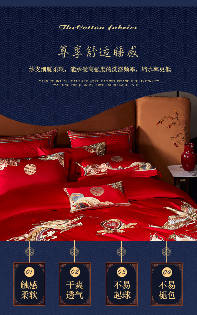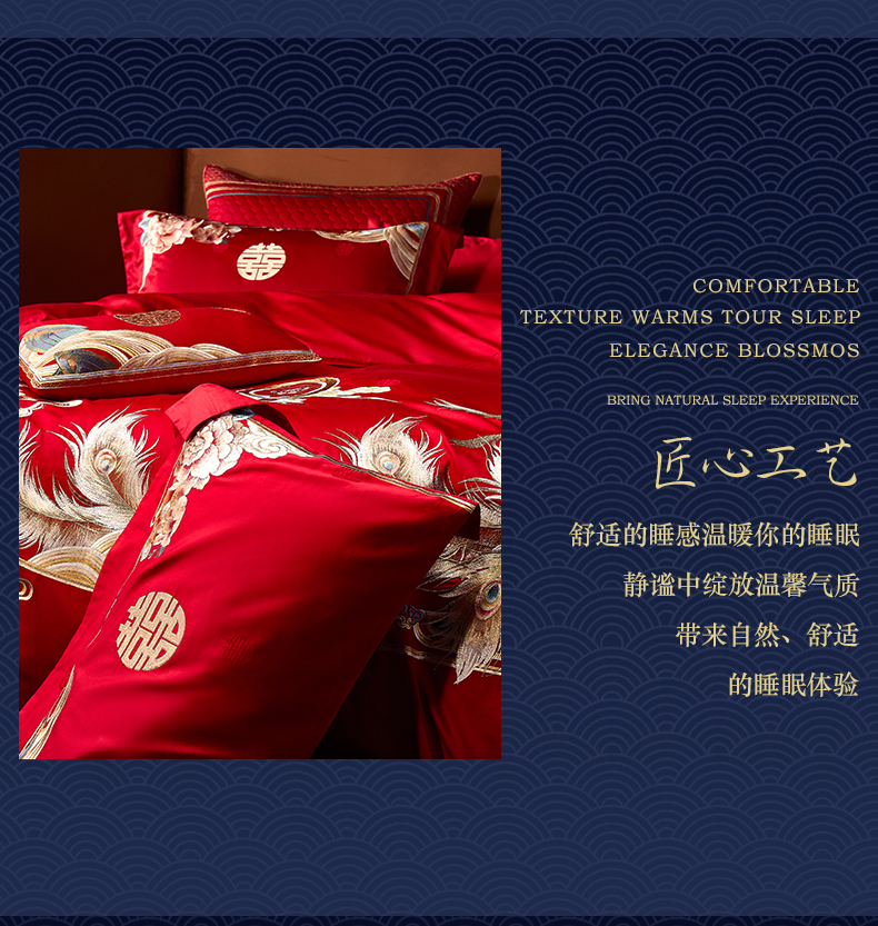 自然醒160支长绒棉提花尊享系列婚庆多件套中式传统婚庆全棉床单四件套龙凤床盖被套床上用品GDS