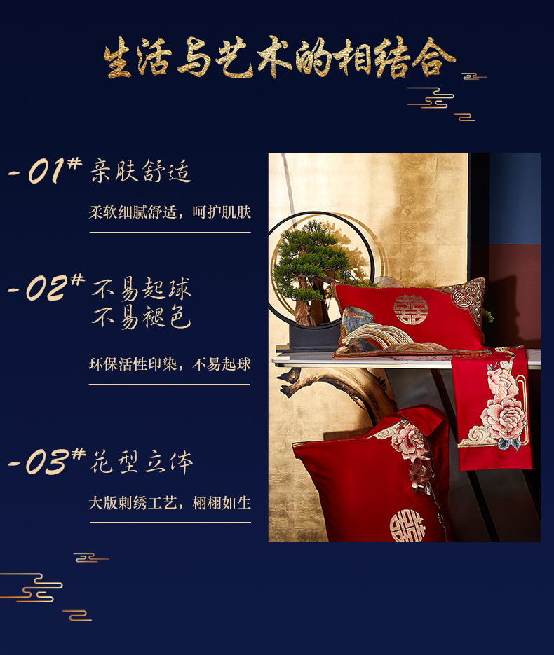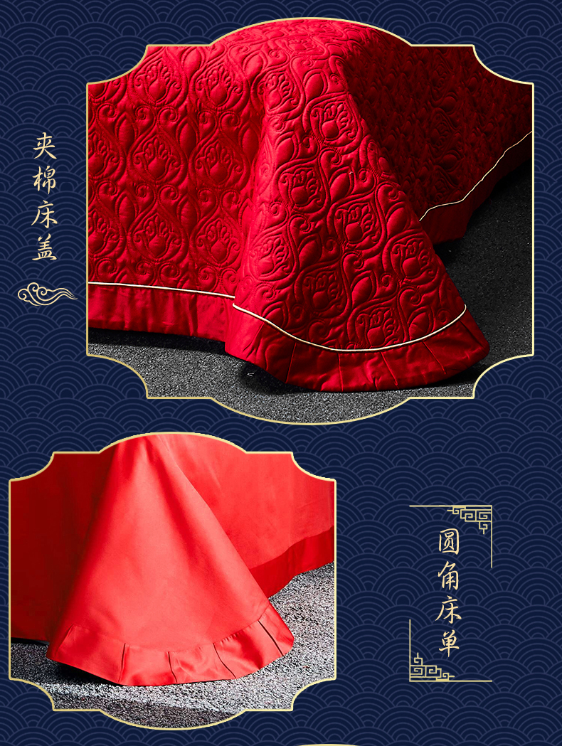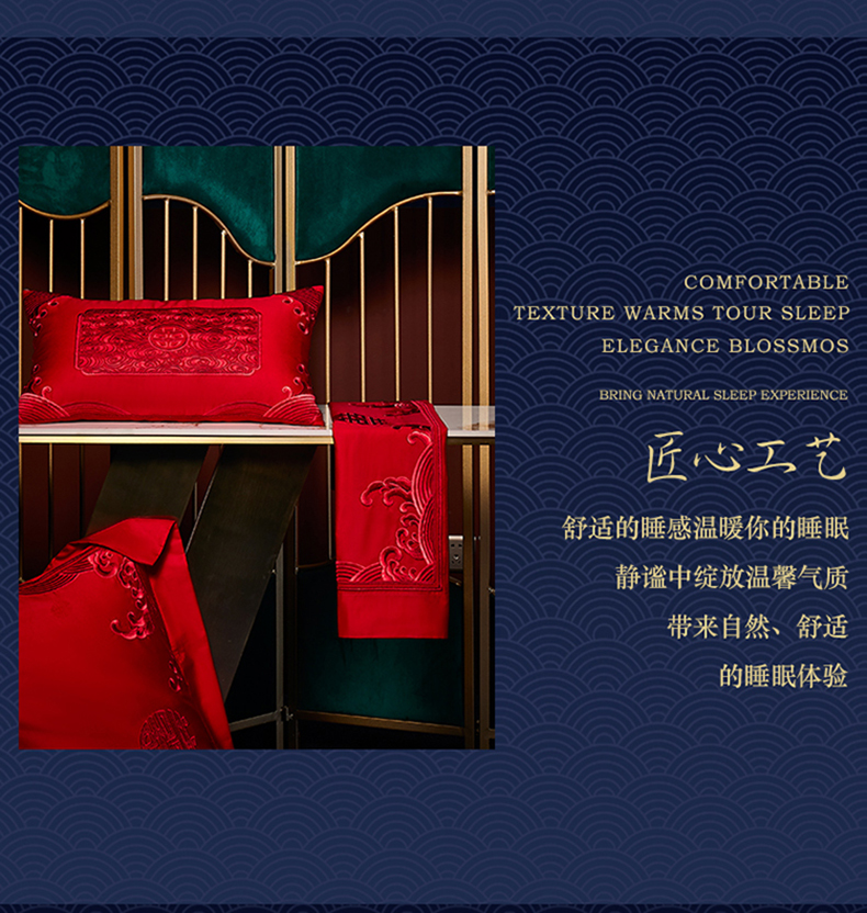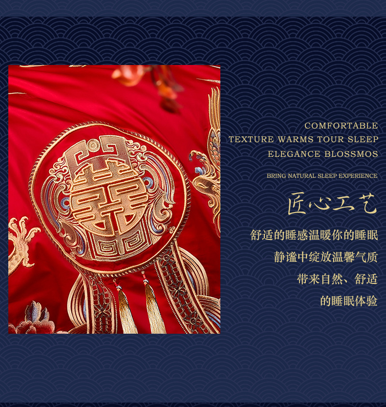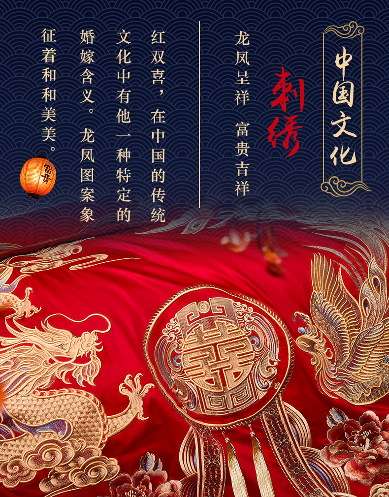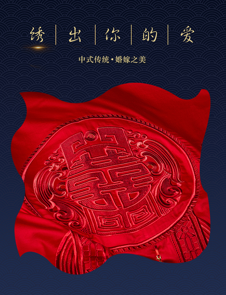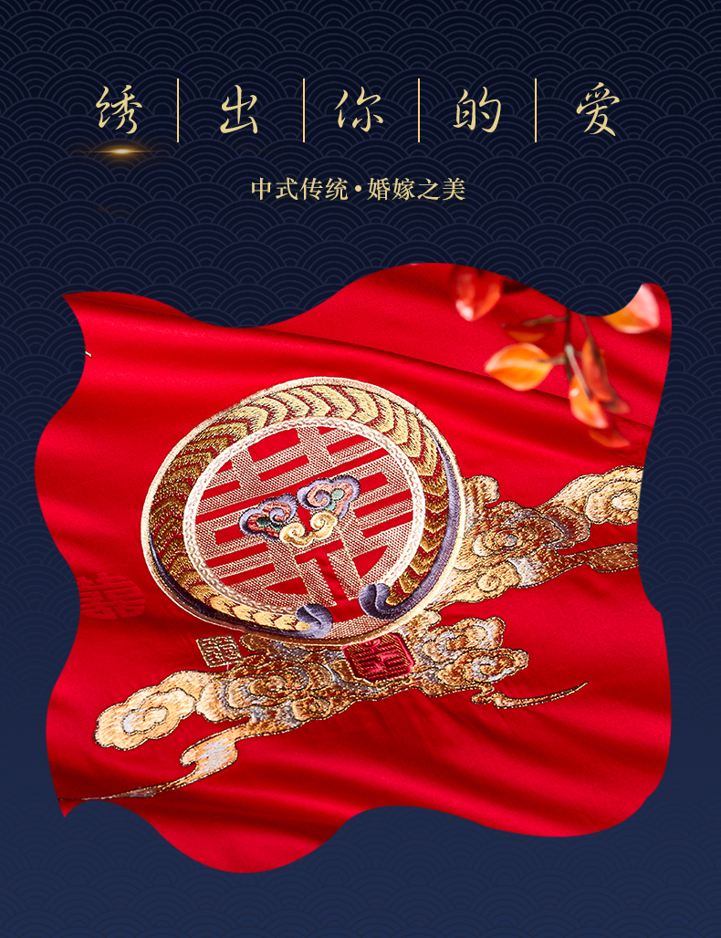 自然醒160支长绒棉提花尊享系列婚庆多件套中式传统婚庆全棉床单四件套龙凤床盖被套床上用品GDS