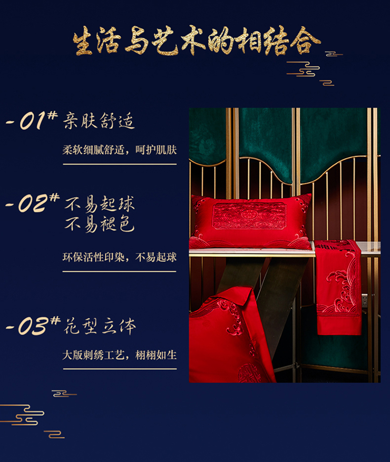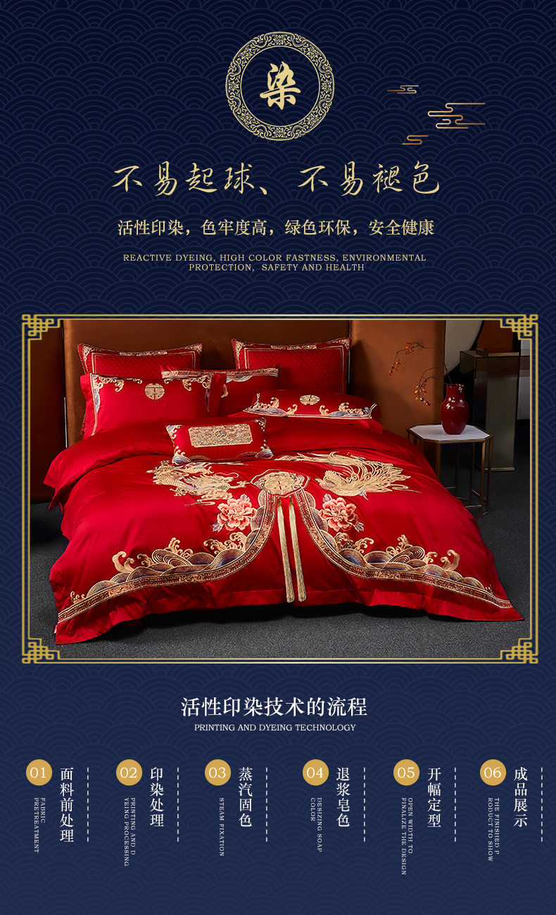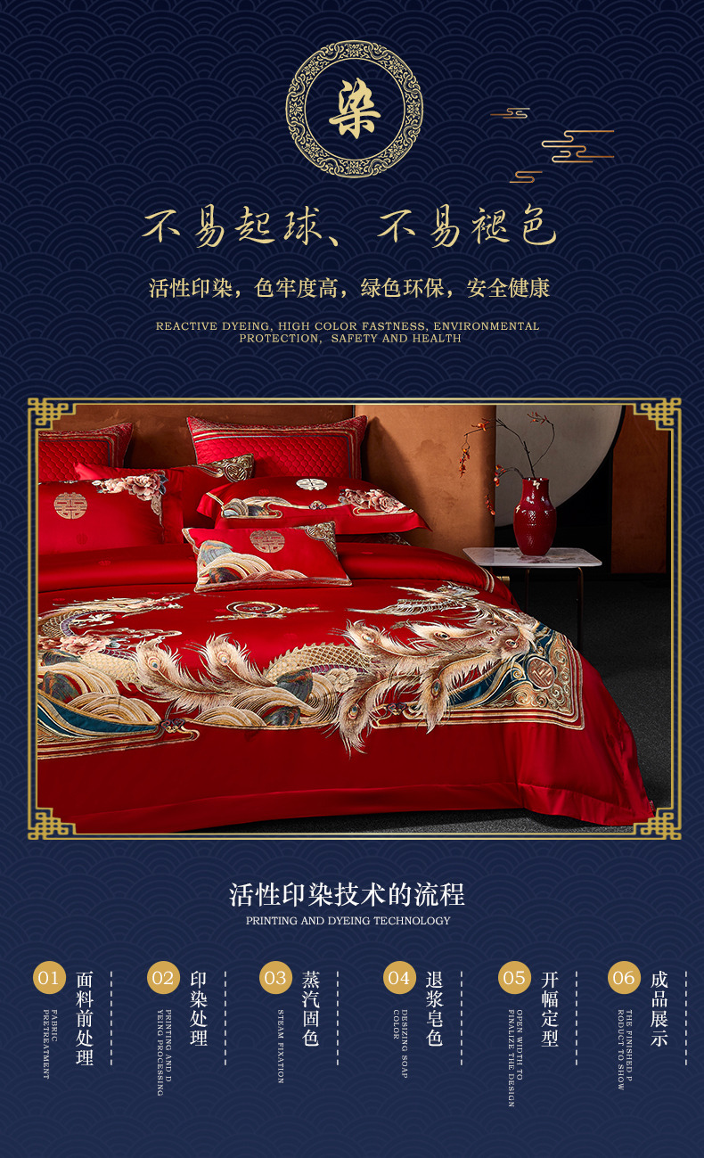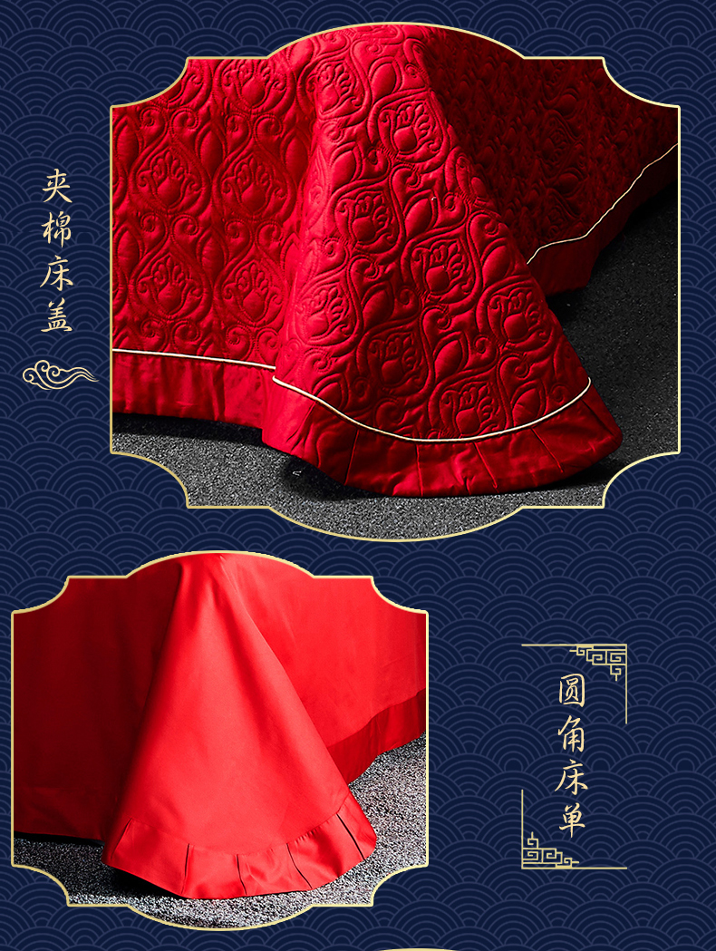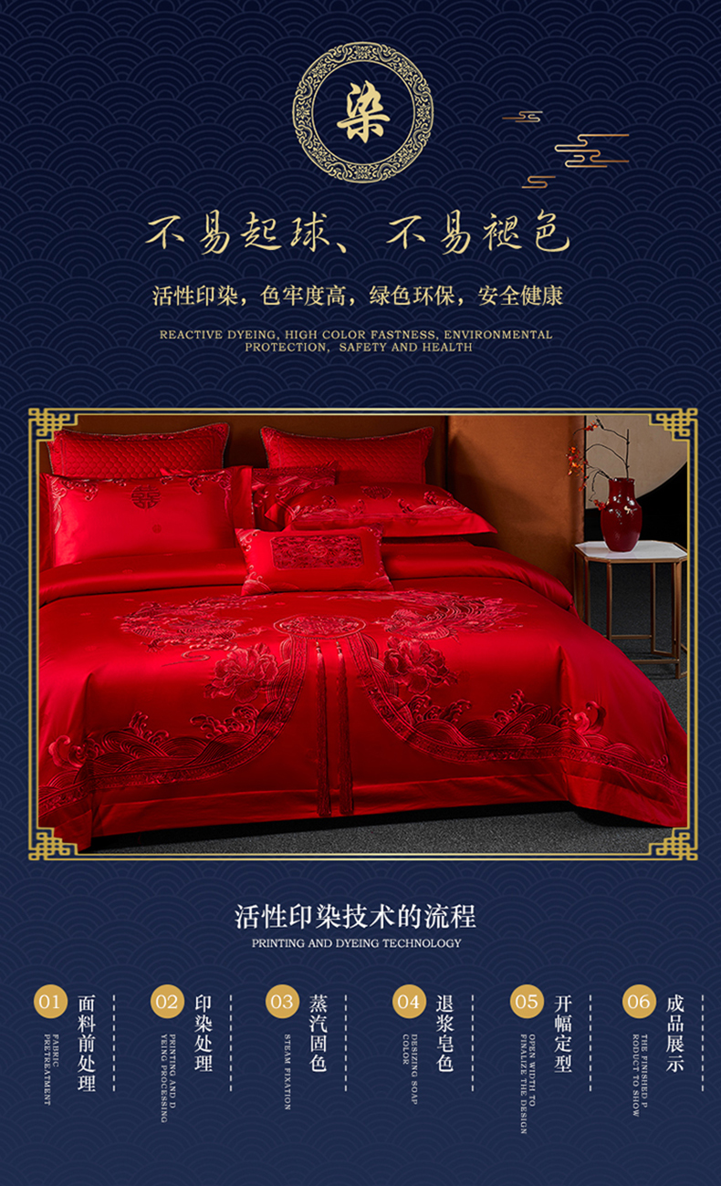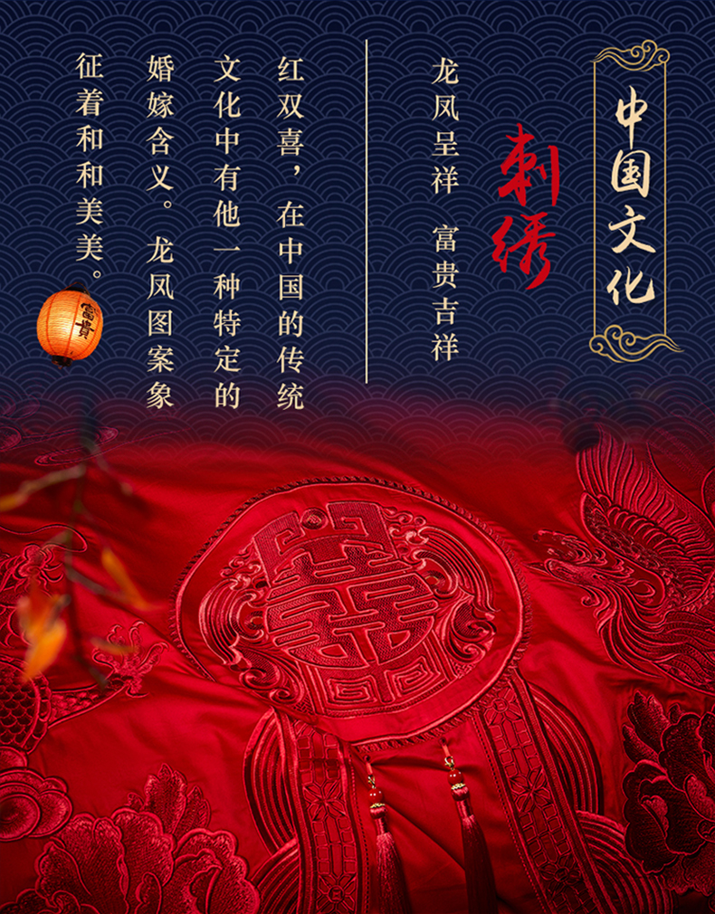 自然醒160支长绒棉提花尊享系列婚庆多件套中式传统婚庆全棉床单四件套龙凤床盖被套床上用品GDS