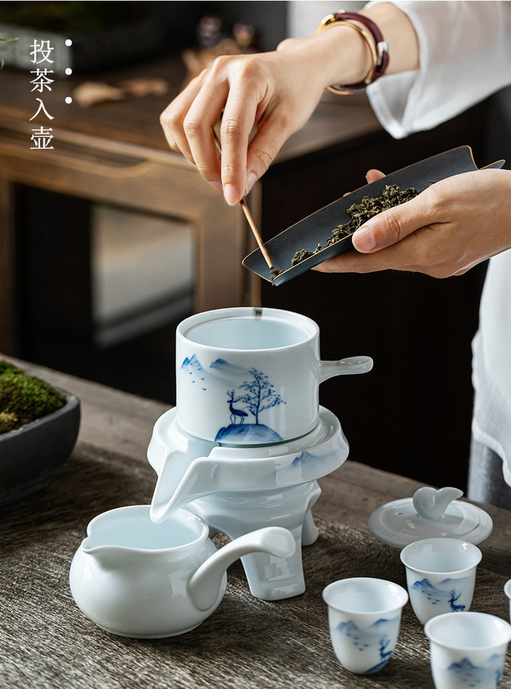 功夫茶具套装家用简约现代陶瓷精品礼盒装办公室泡茶手绘石磨