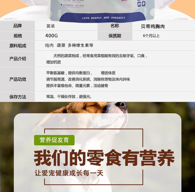 贝蒂狗狗宠物零食400g鸡肉切丝