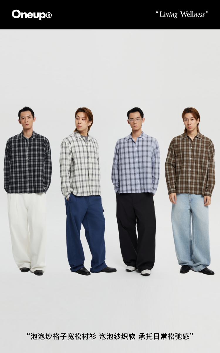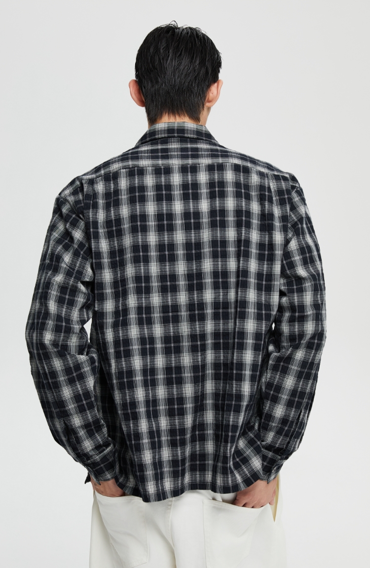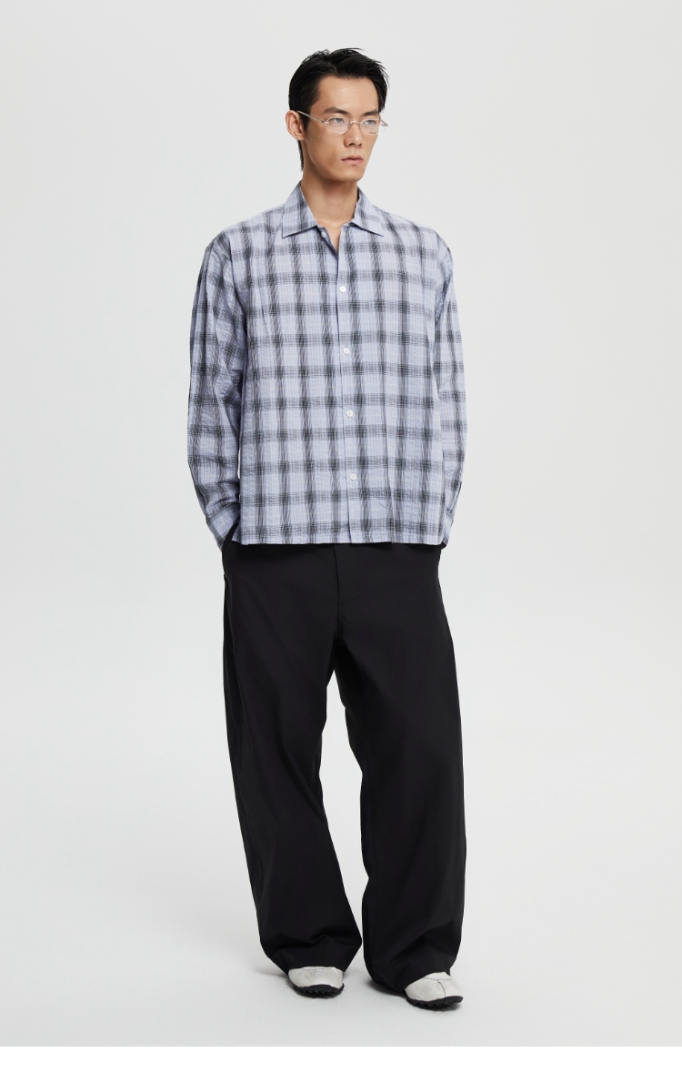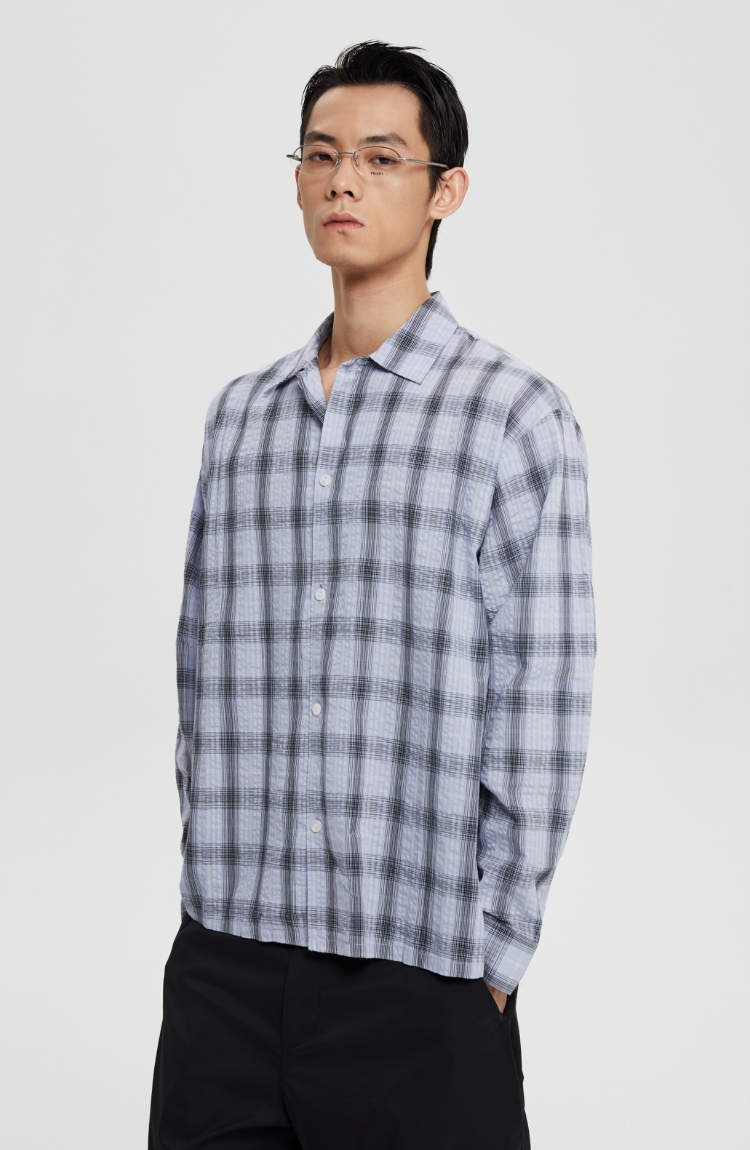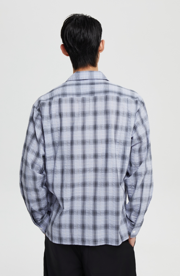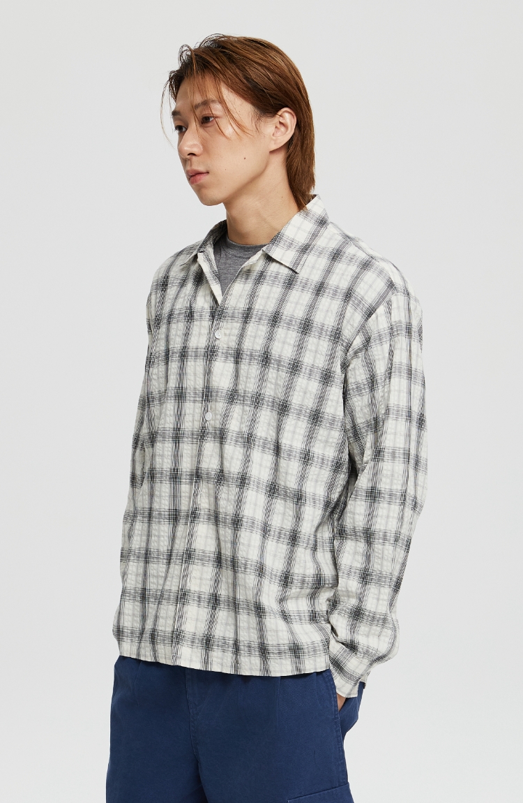 oneup泡泡纱格子宽松衬衫