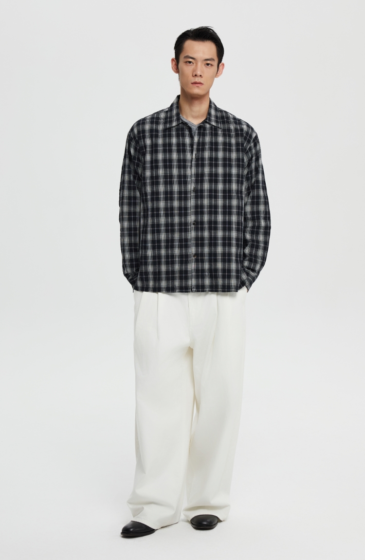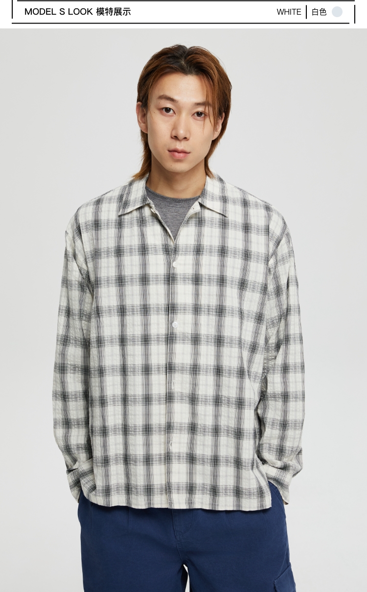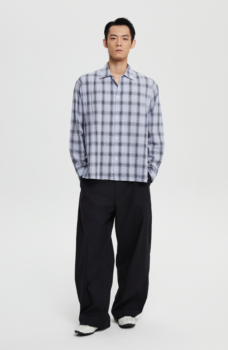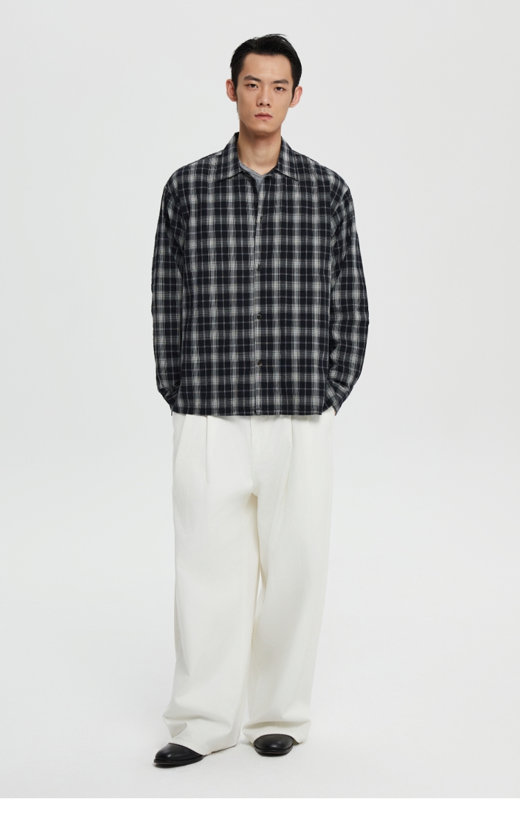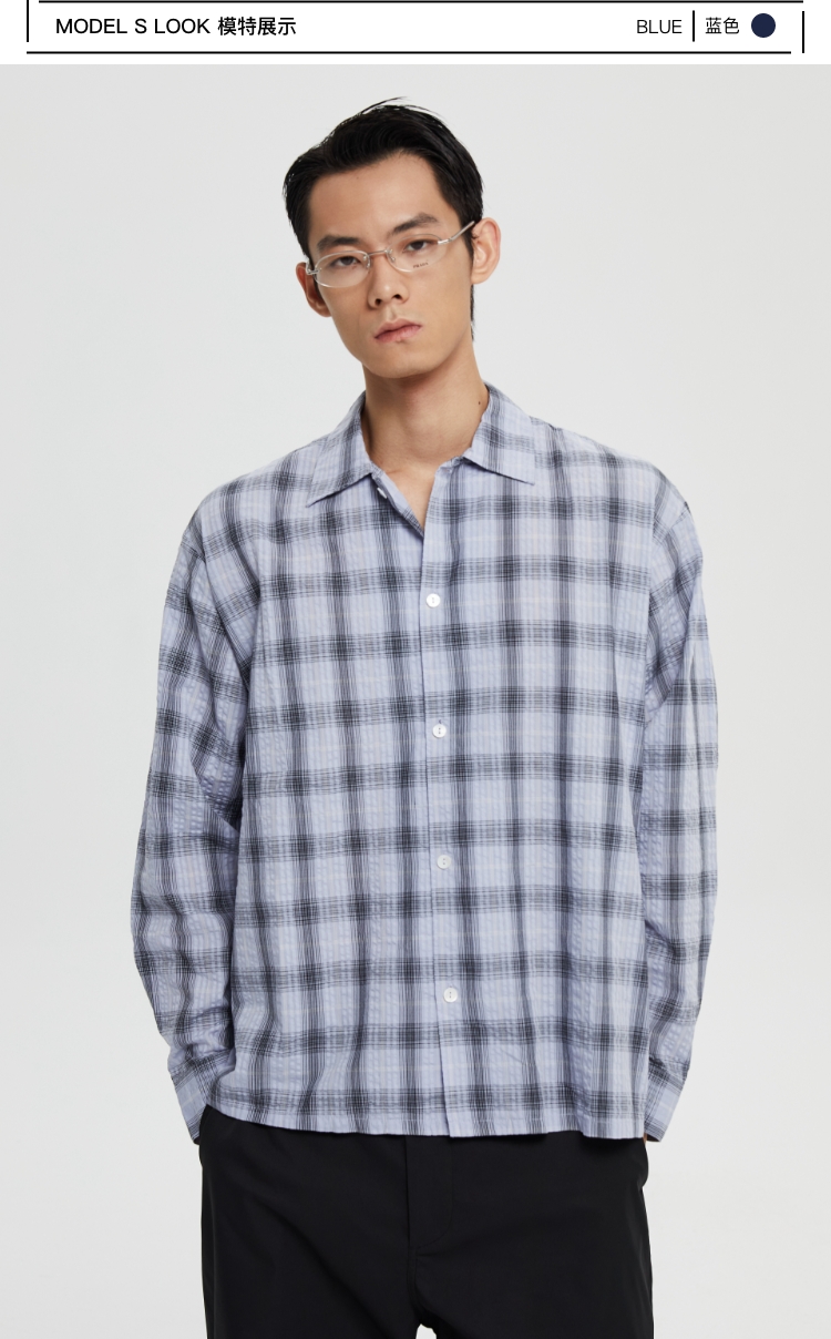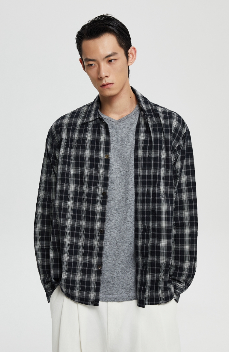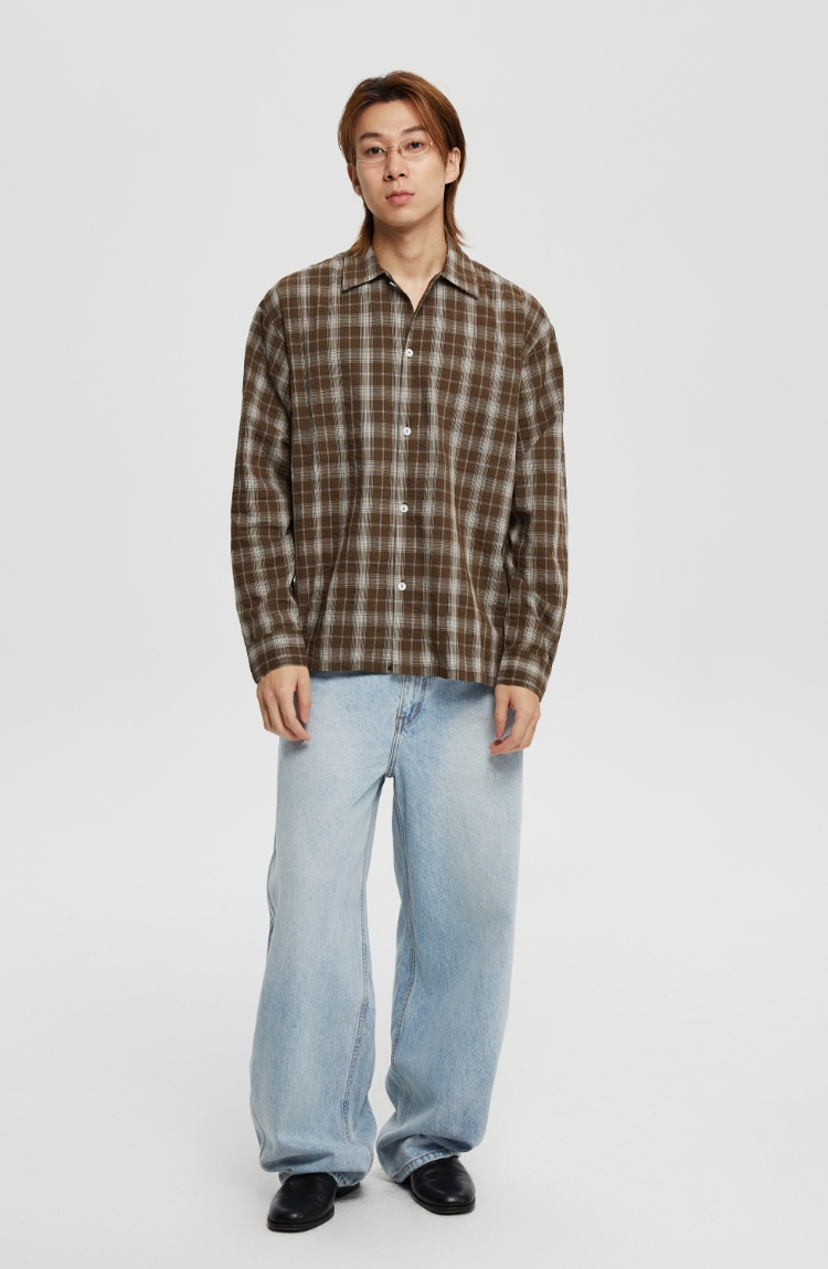 oneup泡泡纱格子宽松衬衫