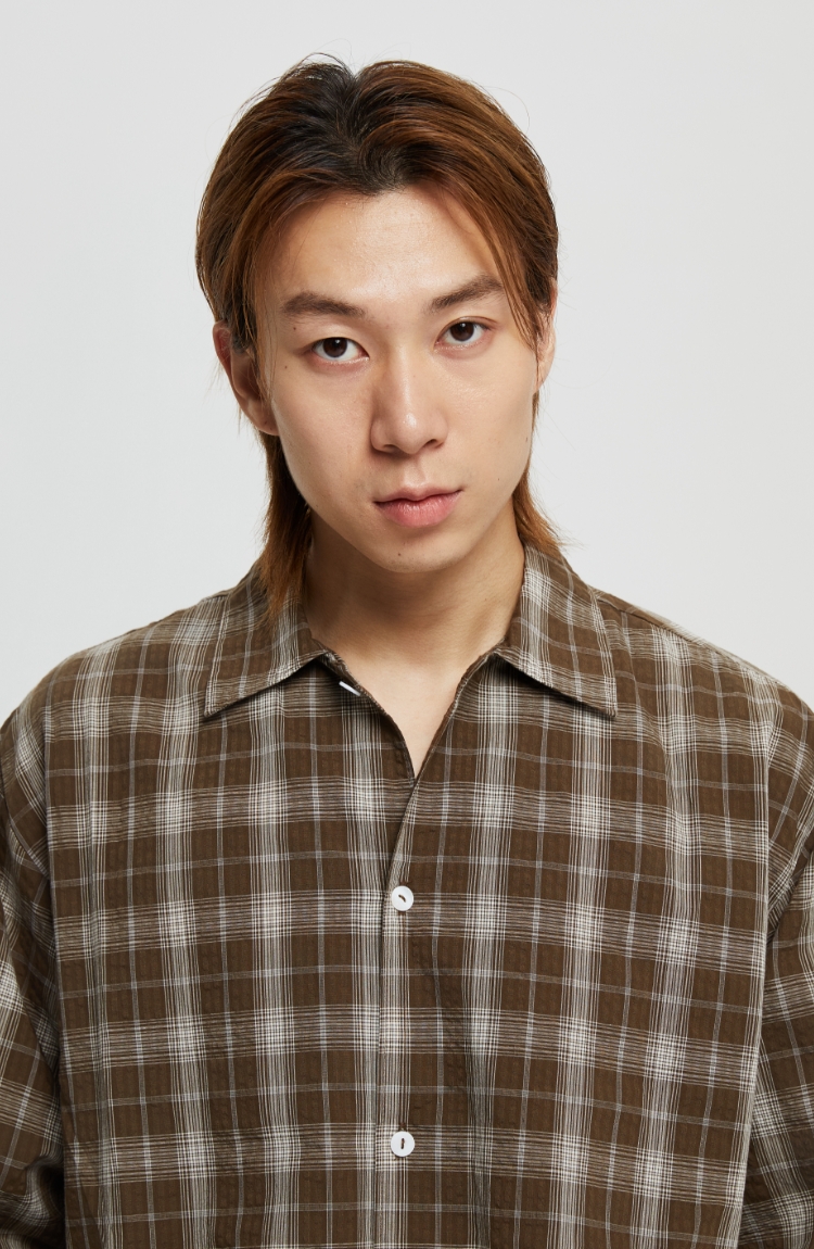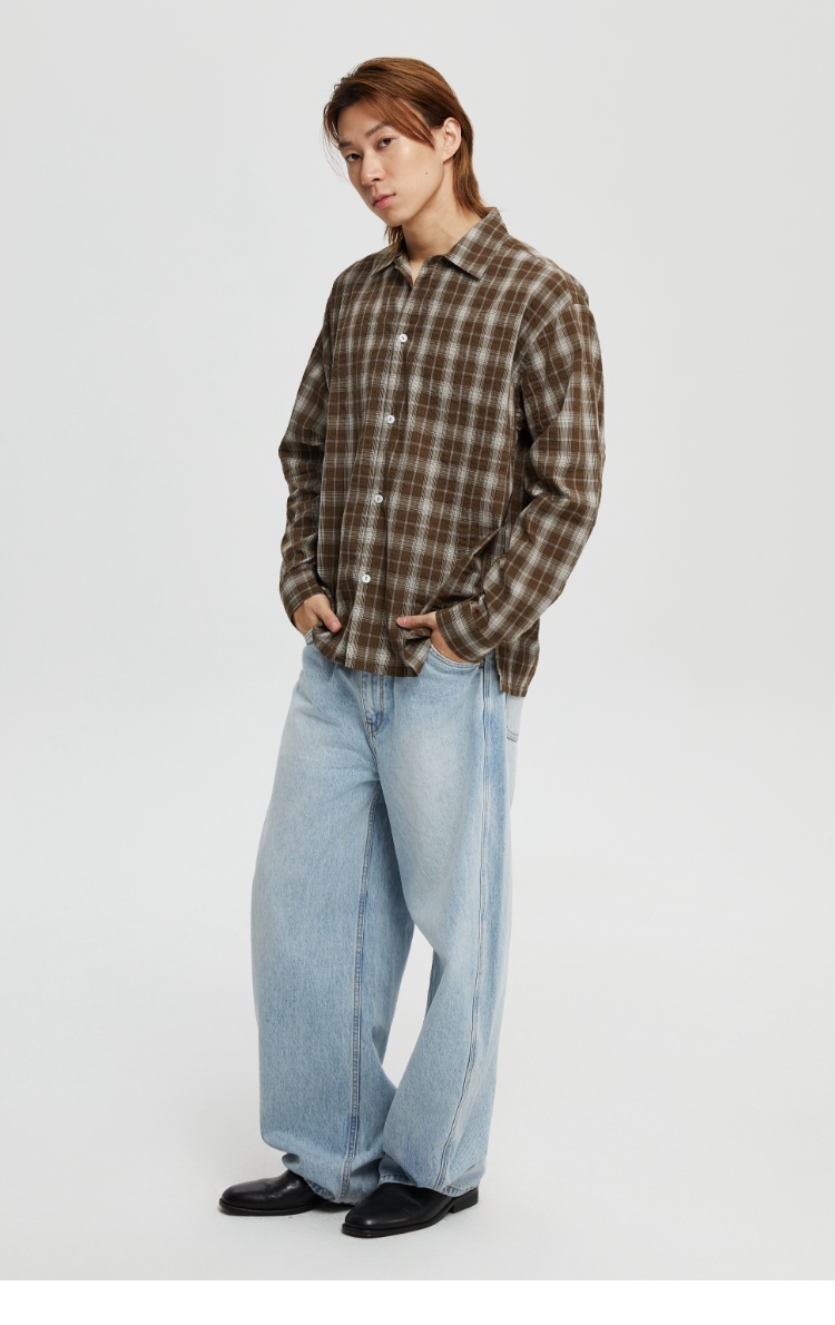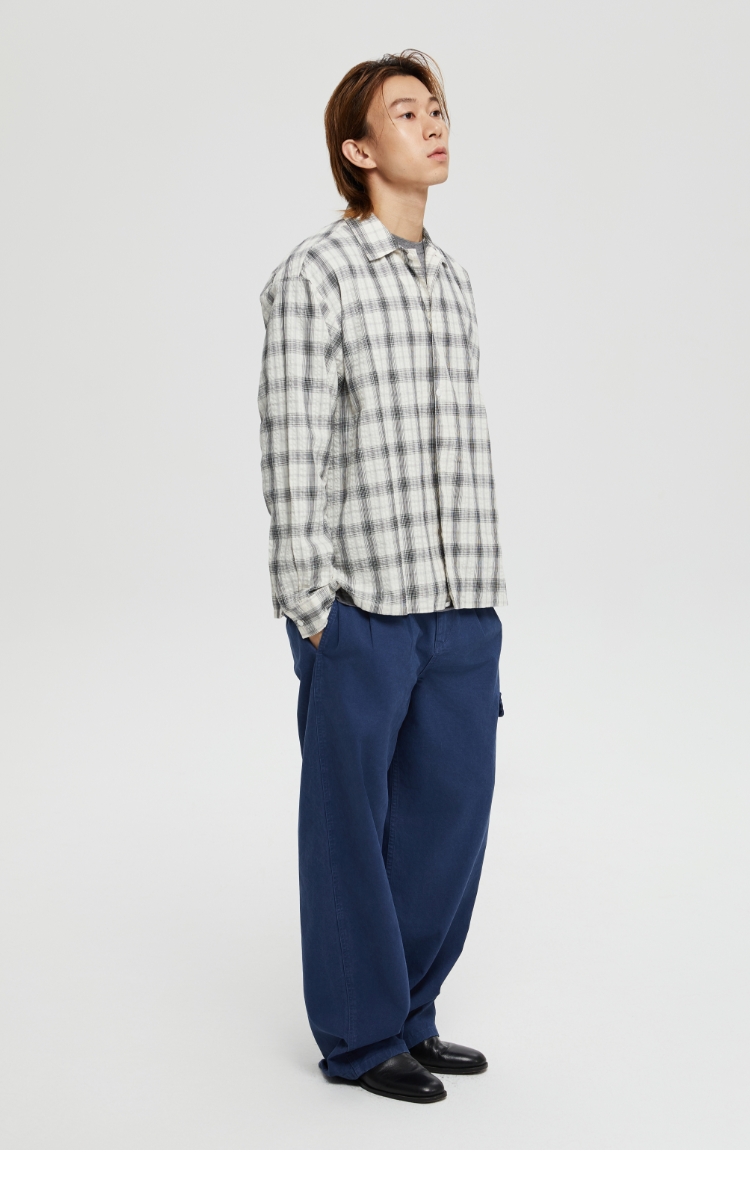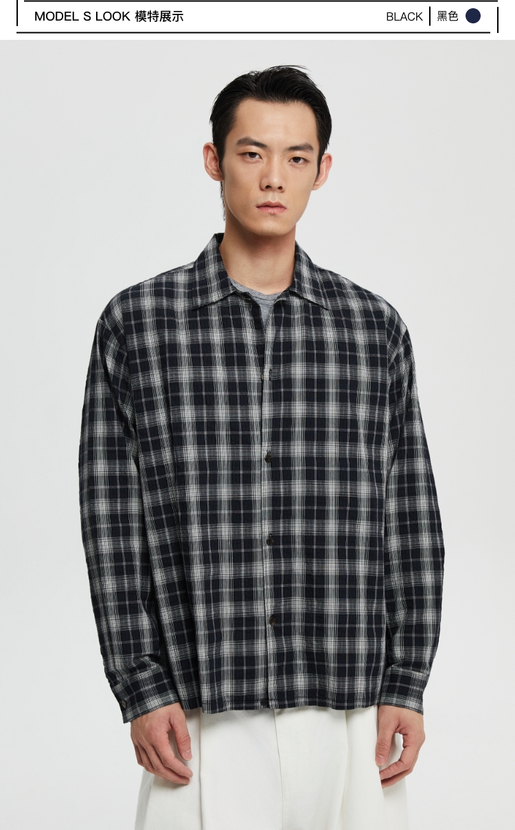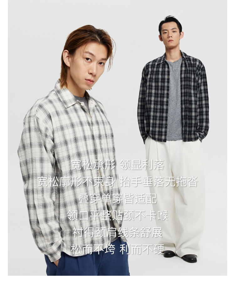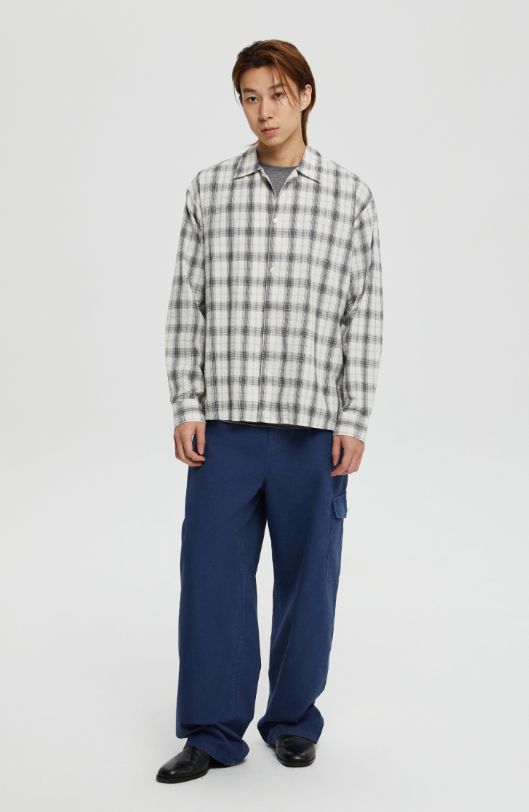 oneup泡泡纱格子宽松衬衫