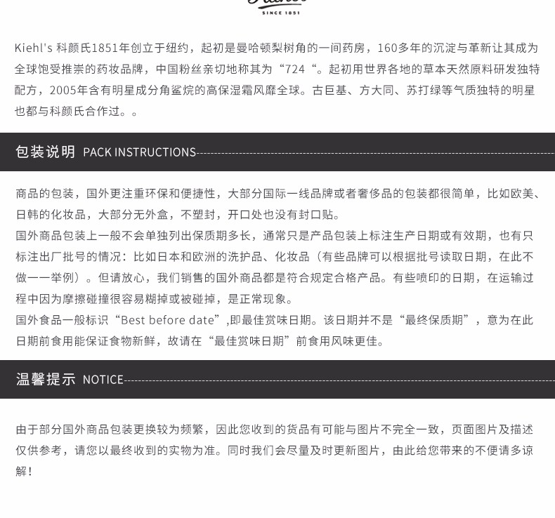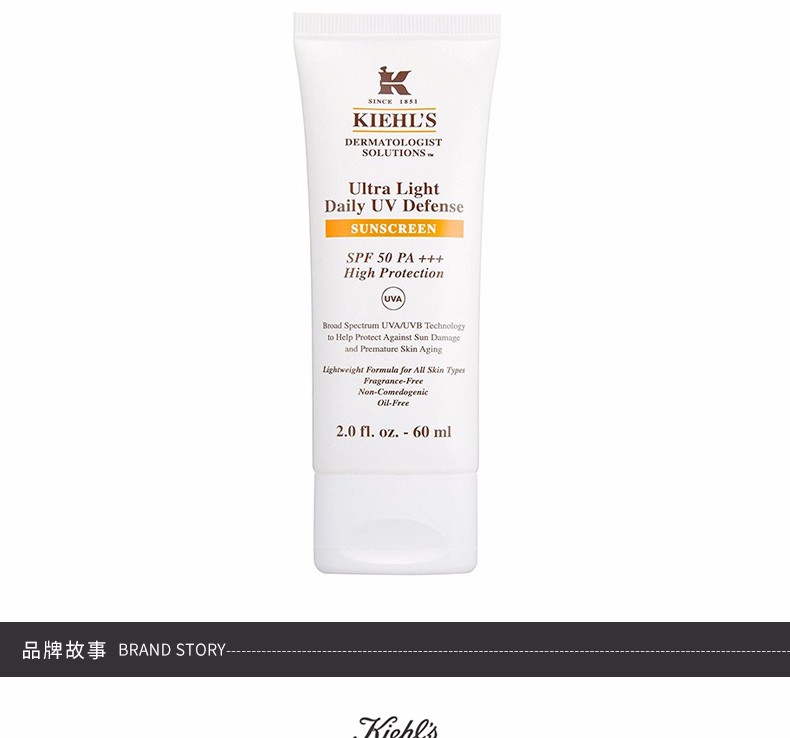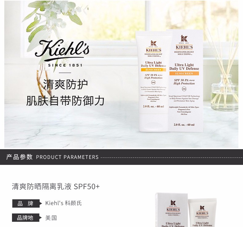 KIEHL'S科颜氏 防晒霜 SPF50 PA++++ 60ML 美国