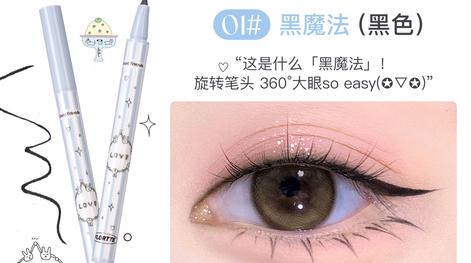 #spes诗裴丝粉丝专属 FLORTTE/花洛莉亚好胖友俱乐部系列万向眼线液笔防水