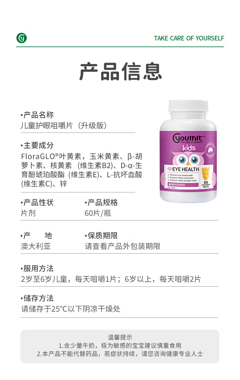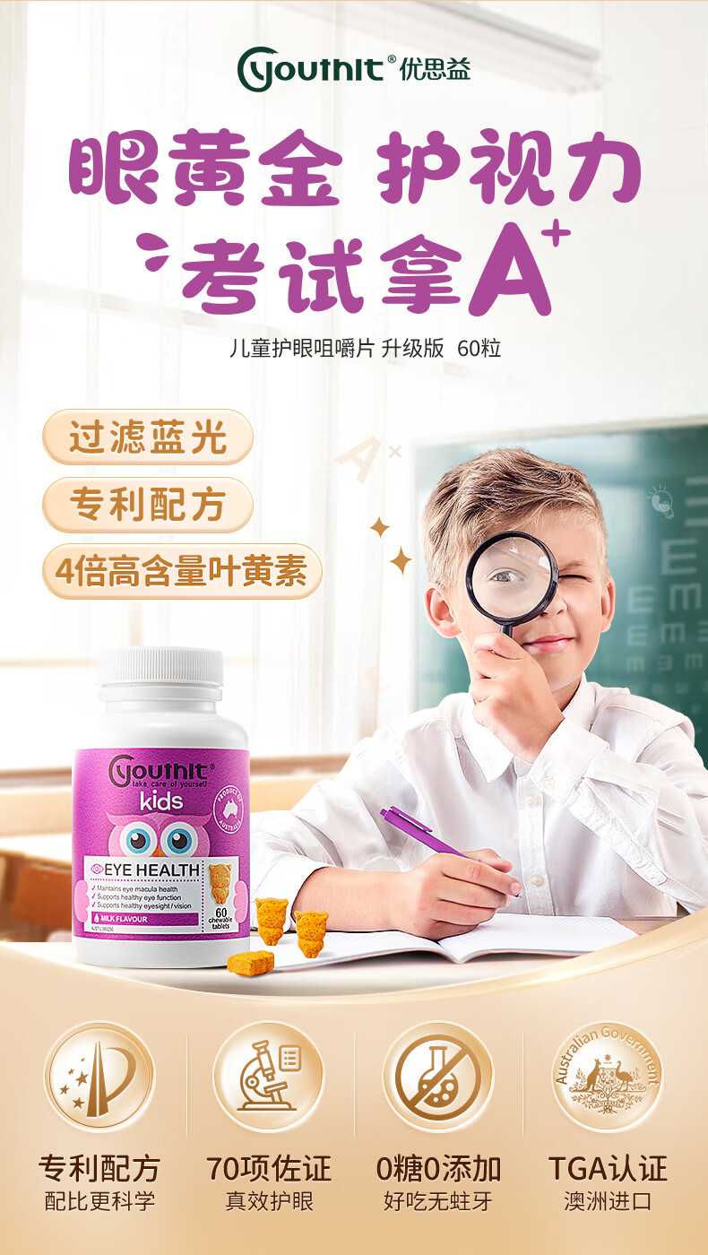 【海豚美购】优思益Youthit儿童护眼咀嚼片 60片