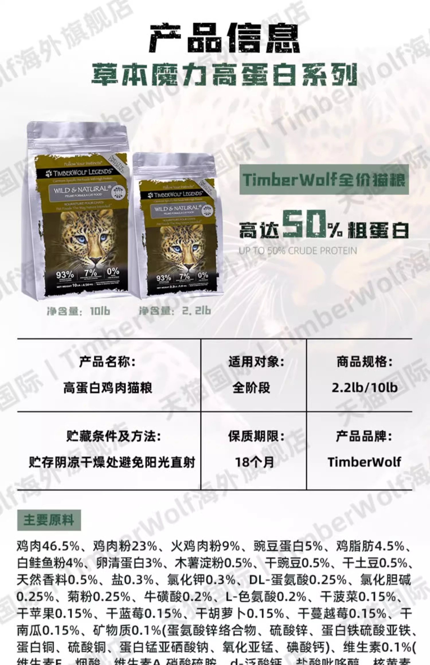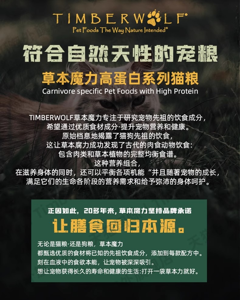 【保税仓】Timberwolf草本魔力原野传奇猫粮新包装(有效期至25年9月)