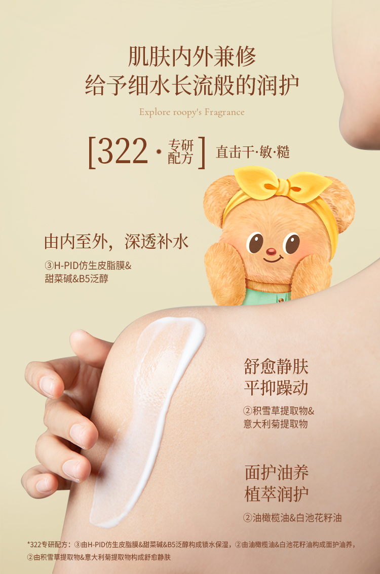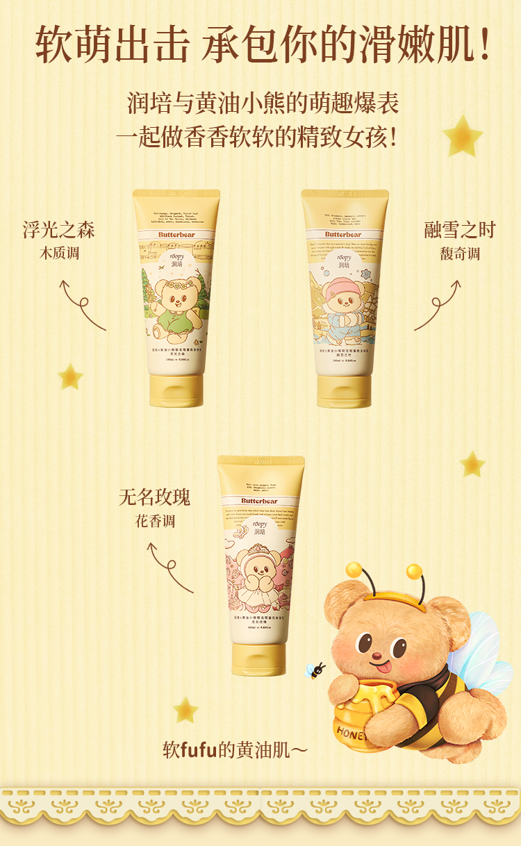 roopy润培丨黄油小熊联名款馥奇香氛植物精粹身体乳150ml*3支