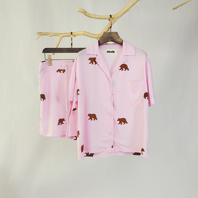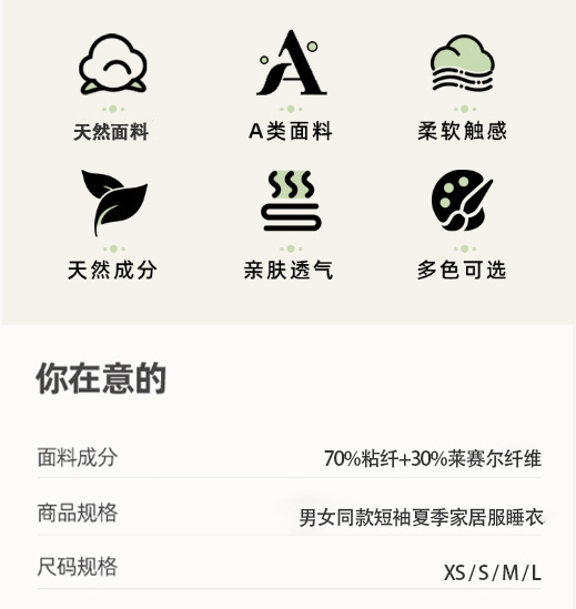 情侣款家居服睡衣 夏款短袖&短裤男女套装 70%粘纤+30%莱赛尔纤维,拥有真丝光泽,绸缎坠感,纯棉的吸湿透气