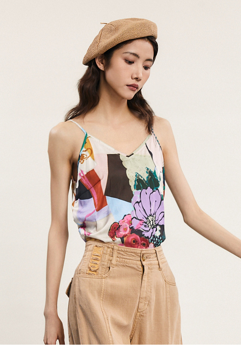 谜底花色性感小吊带女2024春季新款复古风印花上衣无袖241MN0138