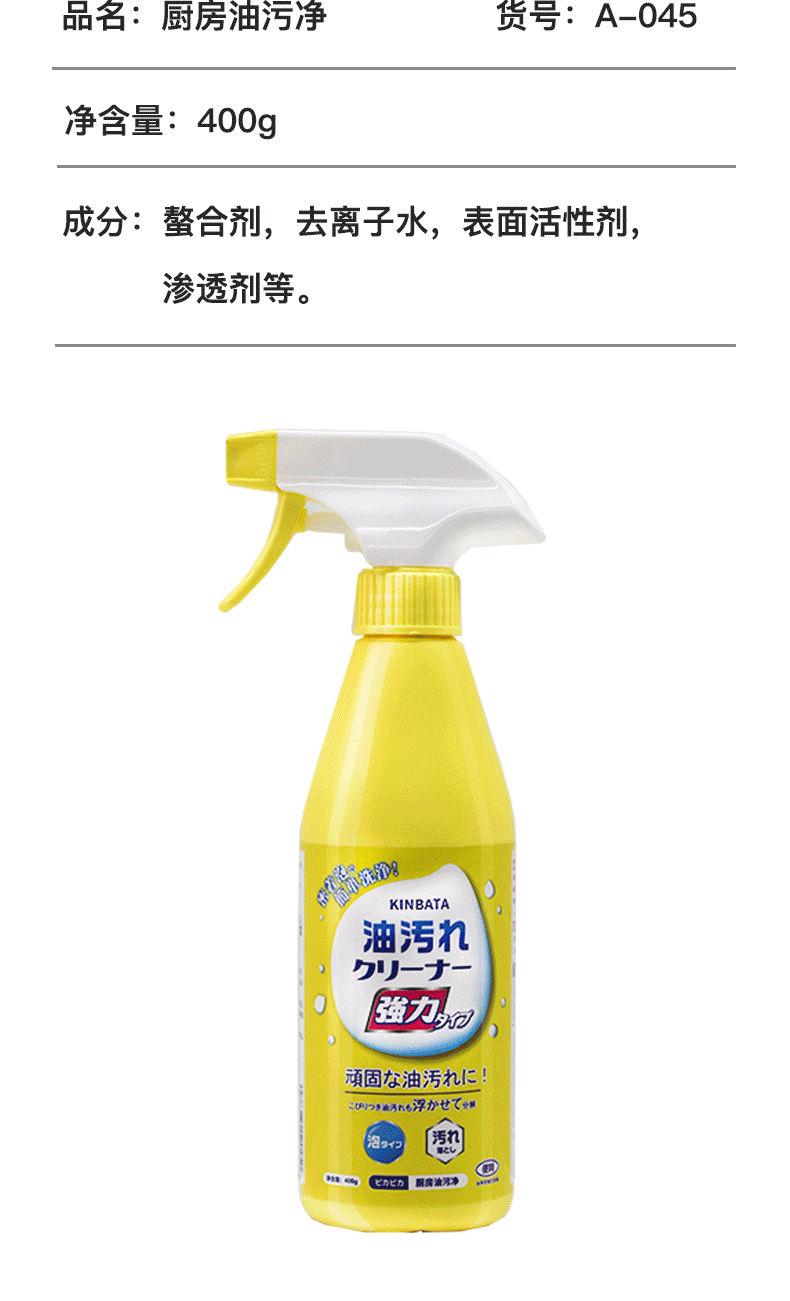 kinbata厨房油污净400g/瓶
