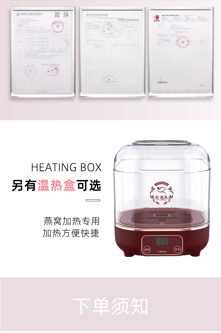 鲜炖在冰箱冷藏,每天加热是个比较繁琐的事情,叶燕盏不仅要品质,还要颜值和效率,将给尊敬的贵宾推出玲珑保温盒,一键启动,5分钟替您搞定,让鲜炖恢复温热丝滑口感