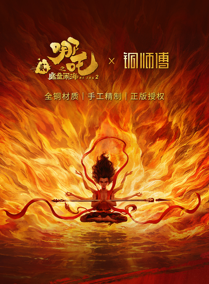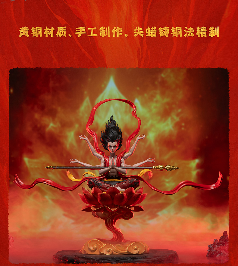 铜师傅《哪吒之魔童闹海》正版授权 火莲六臂哪吒 潮玩铜摆件周边