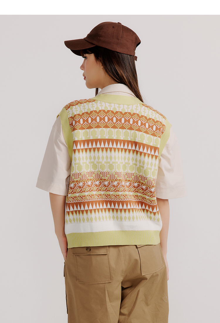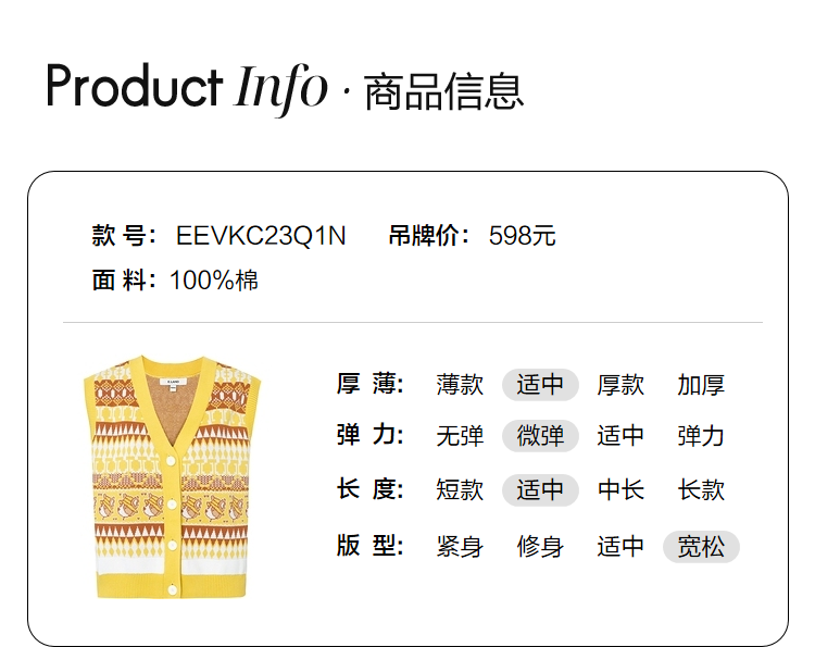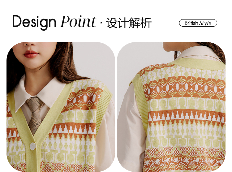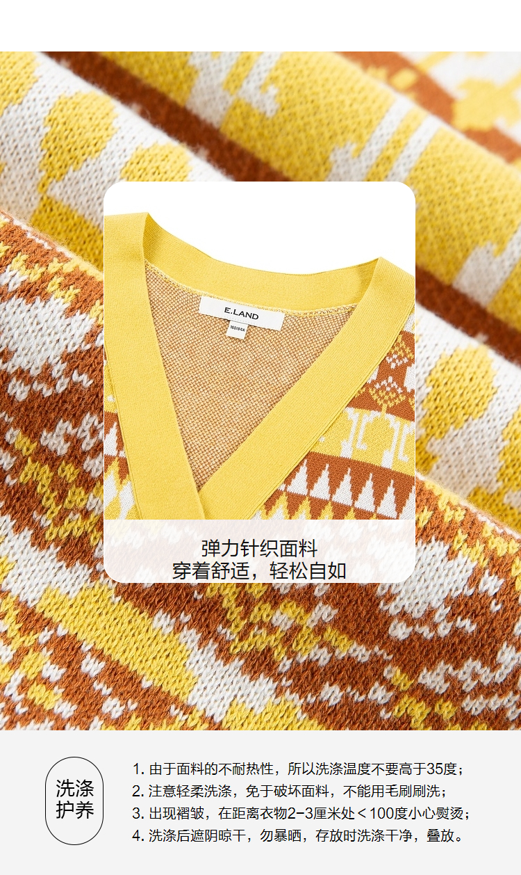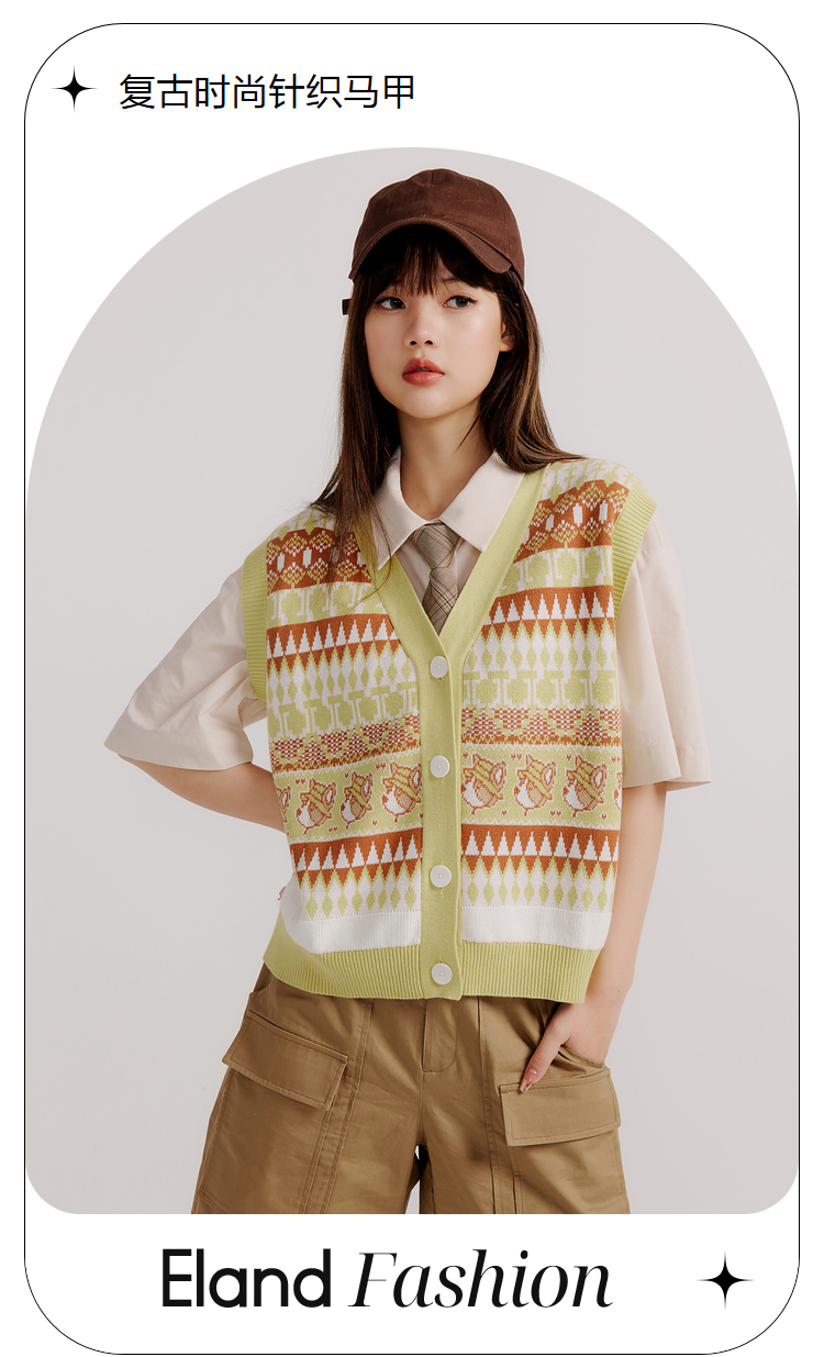 ELAND衣恋复古时尚气质V领洋气无袖针织马甲女EEVKC23Q1N