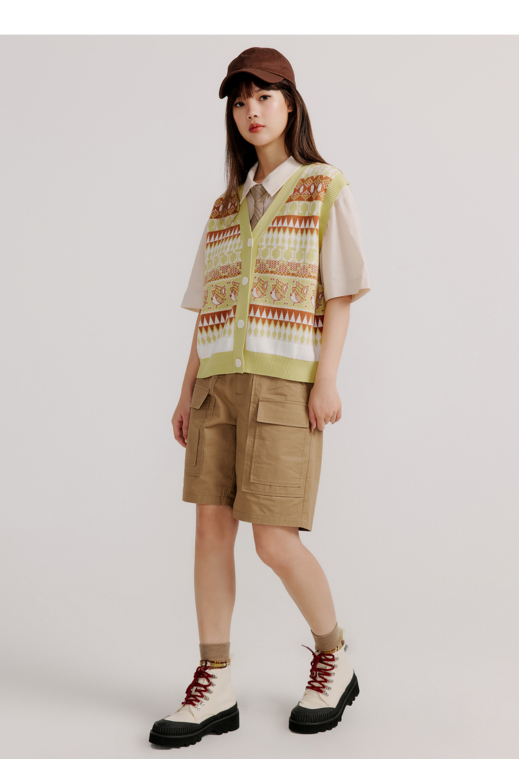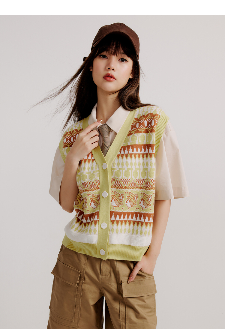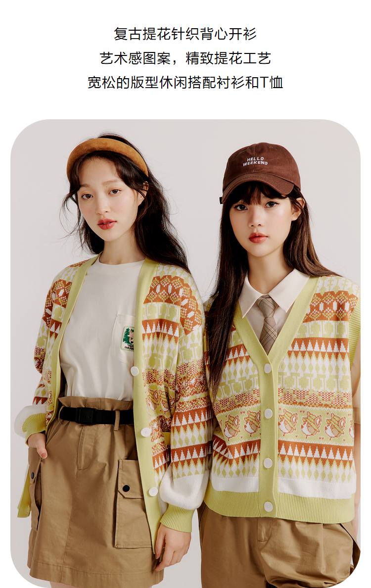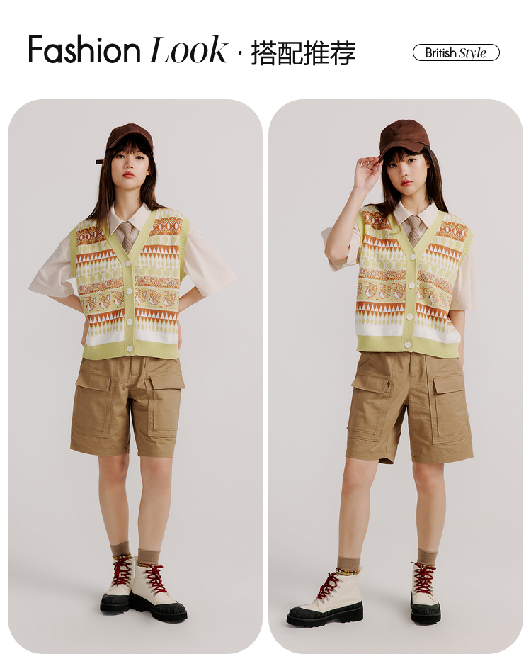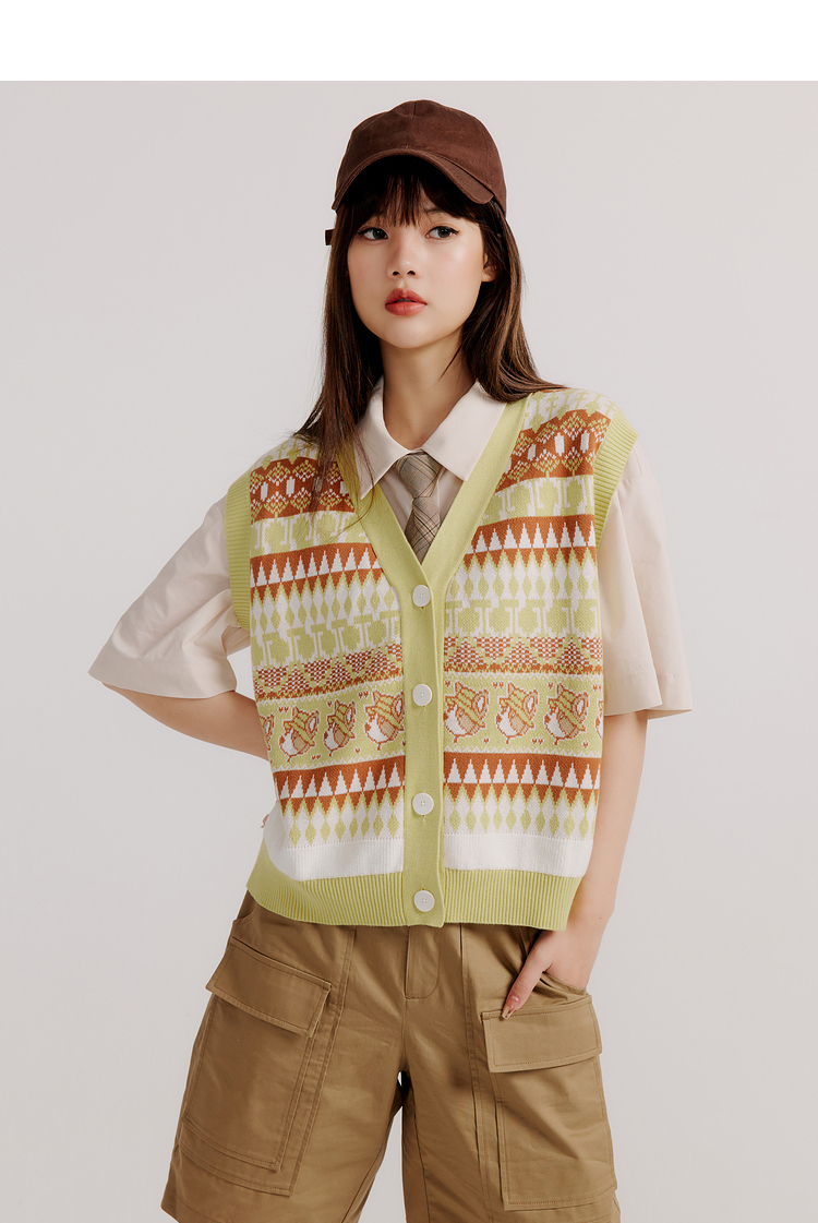 ELAND衣恋复古时尚气质V领洋气无袖针织马甲女EEVKC23Q1N