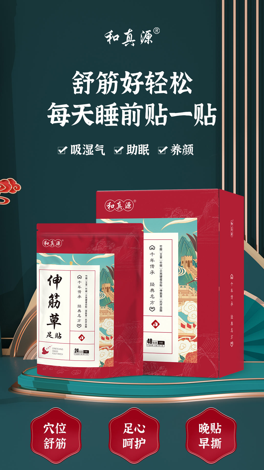 和真源足贴,采用多重中药成分凝聚排出毒素~