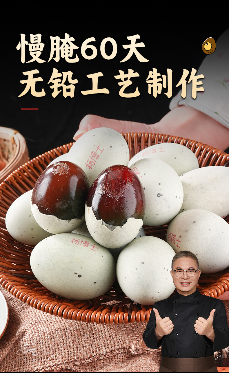 【杨博士自营】松花皮蛋10枚 慢腌60天 无铅工艺制作 晶莹溏心 自然松花 单枚克重:60g