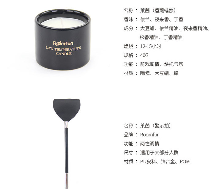 roomfun房趣S M调情套装莱茵 情趣挑爱逗羽毛SP小皮拍丝绸手铐眼罩低温蜡烛