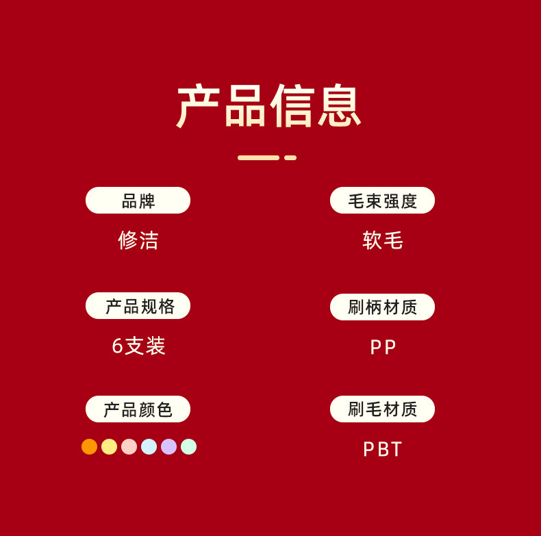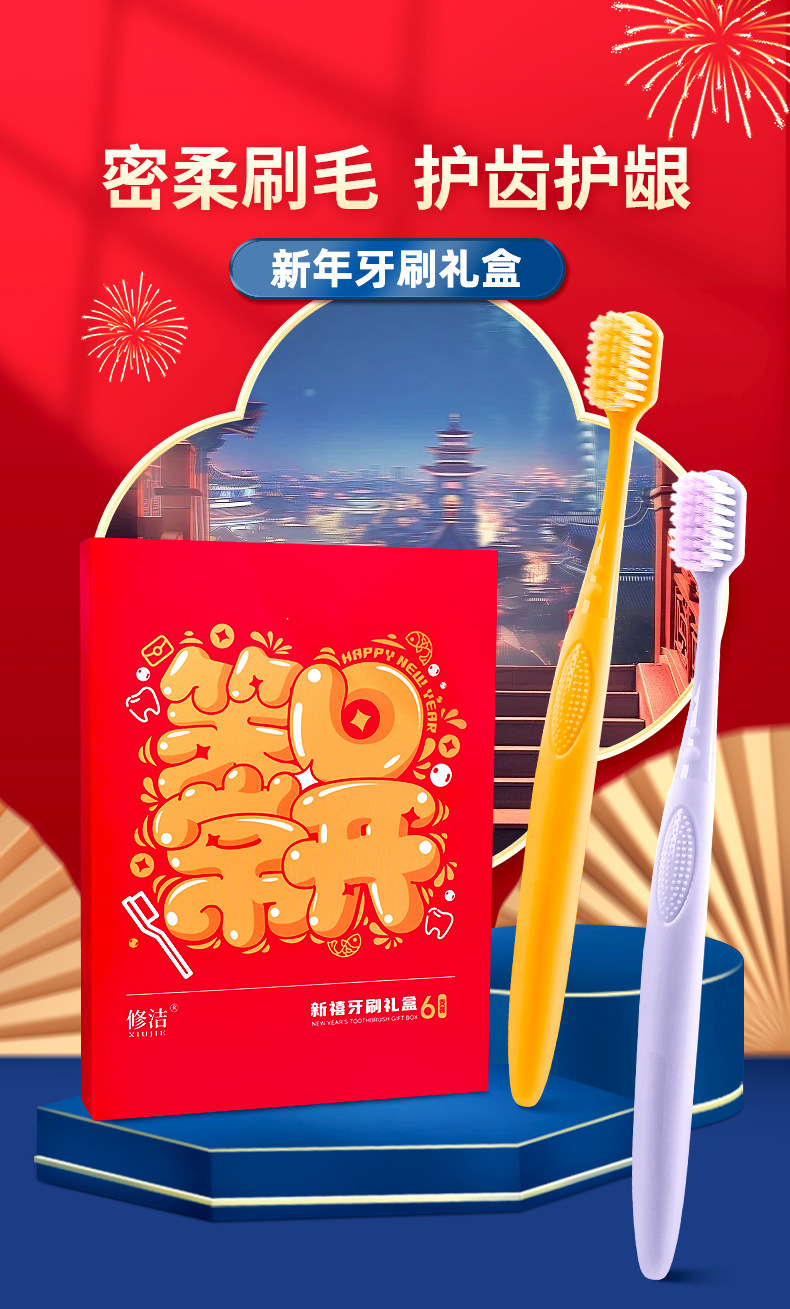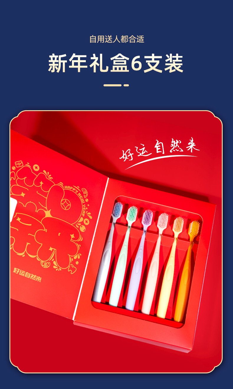 【新品!6色6支礼盒装】修洁新年六支装礼盒牙刷,款款心意贴心呵护,柔软刷毛深层清洁,让您与情侣、家人、朋友一同享受口腔舒爽体验,无论旅行、居家都是不可缺少的好物!