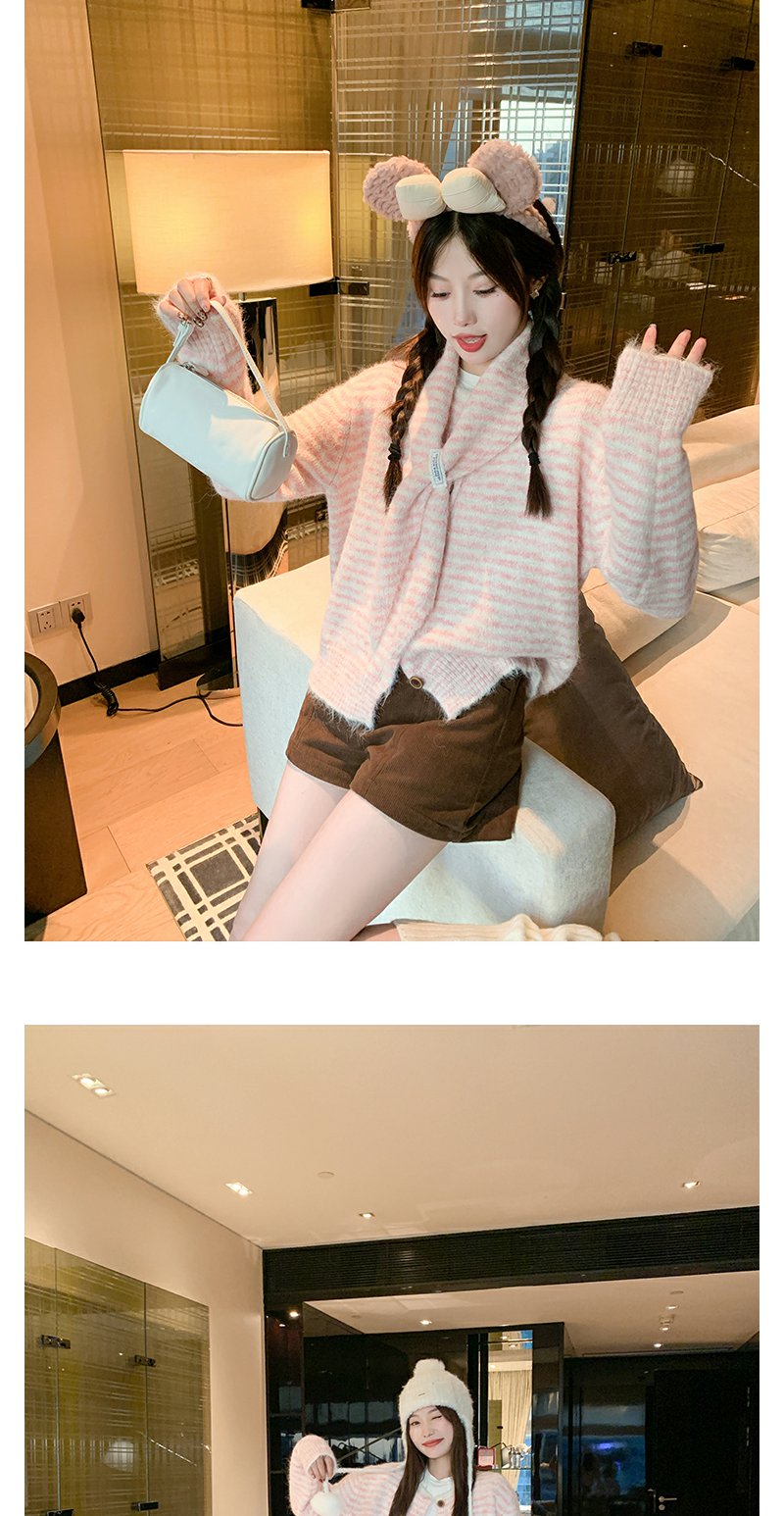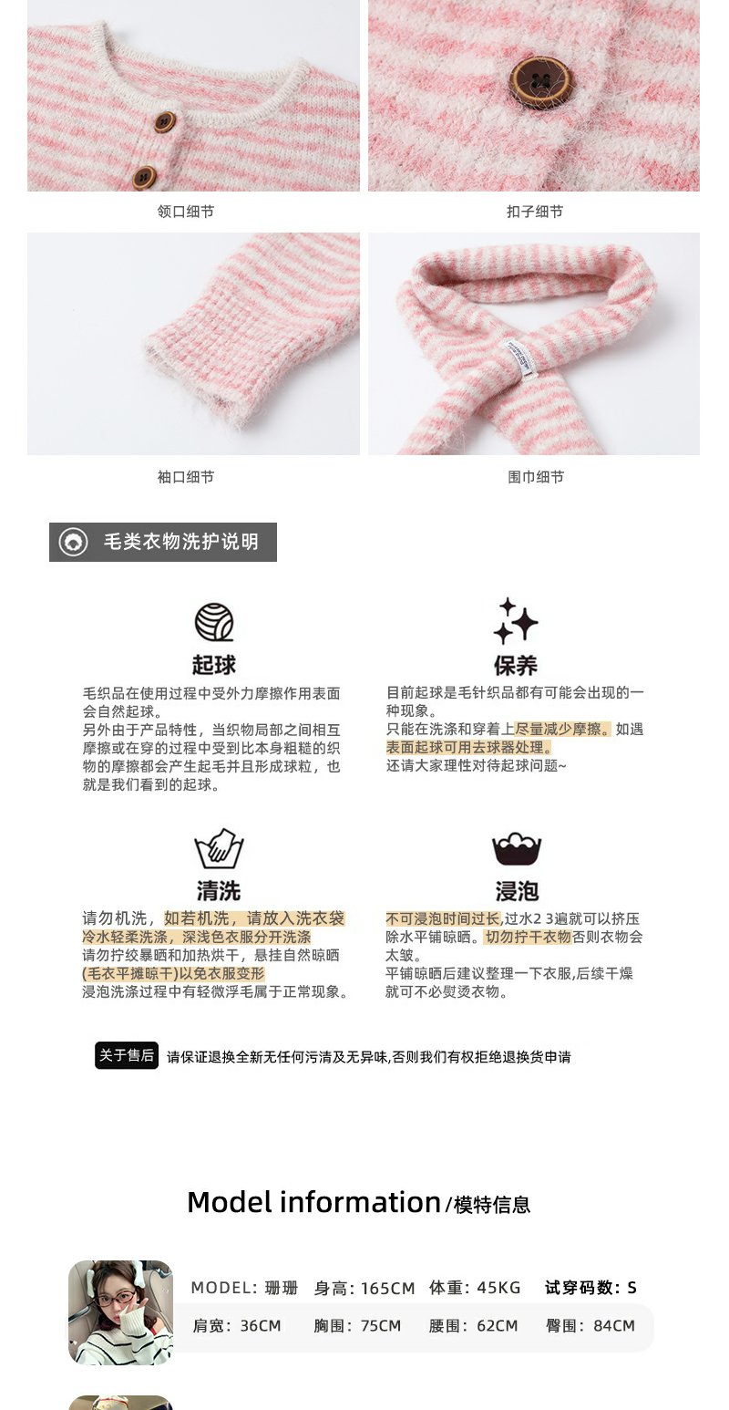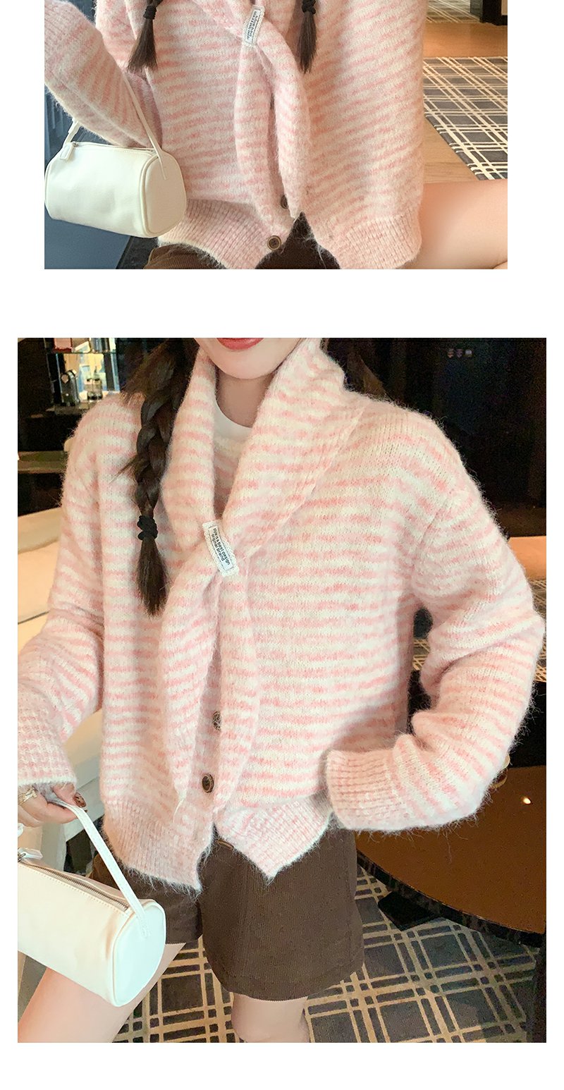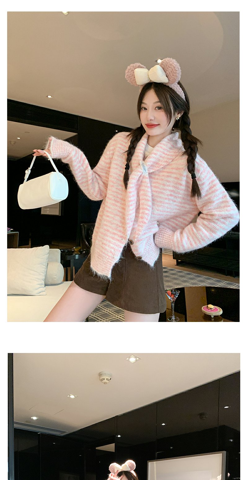 【169元任选2件】现货!条纹带围巾系扣毛衣开衫