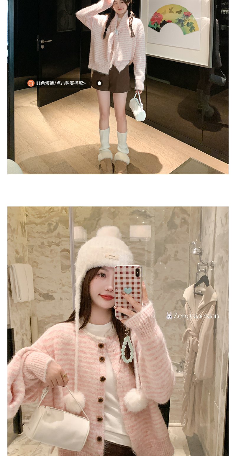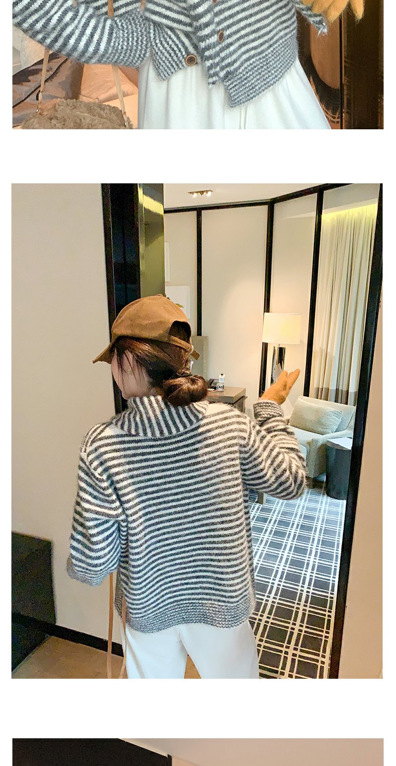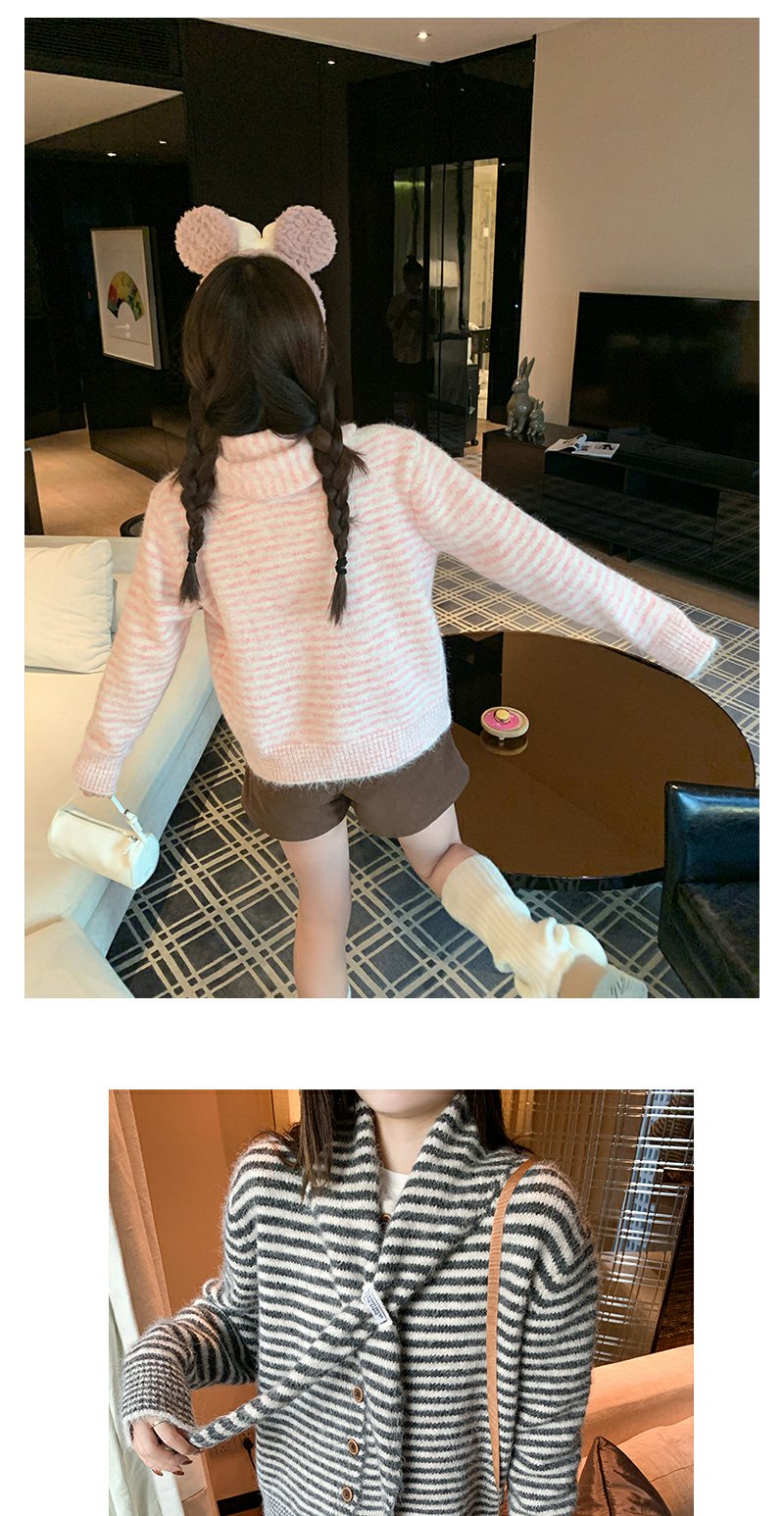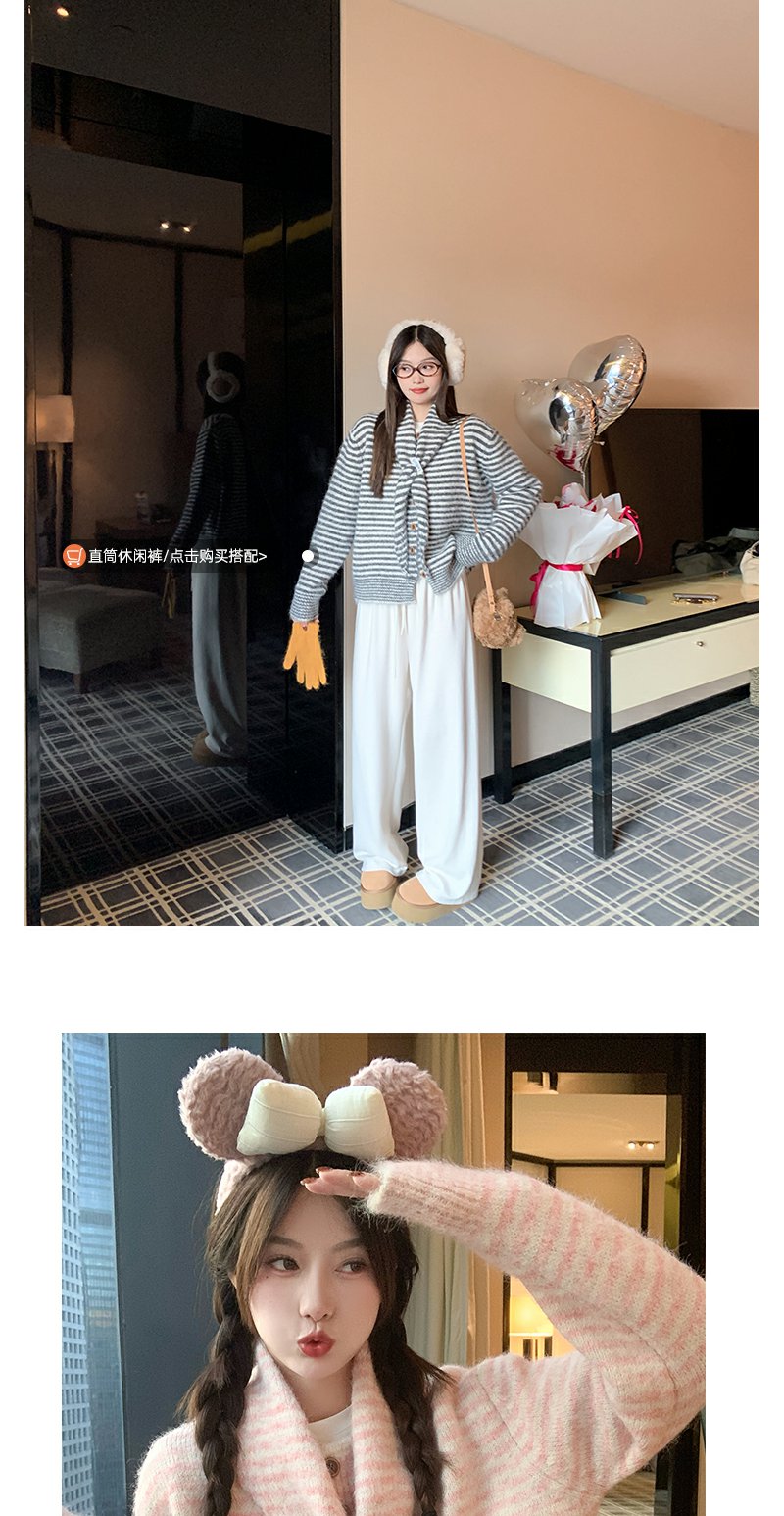 【169元任选2件】现货!条纹带围巾系扣毛衣开衫