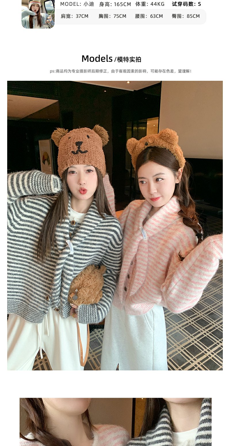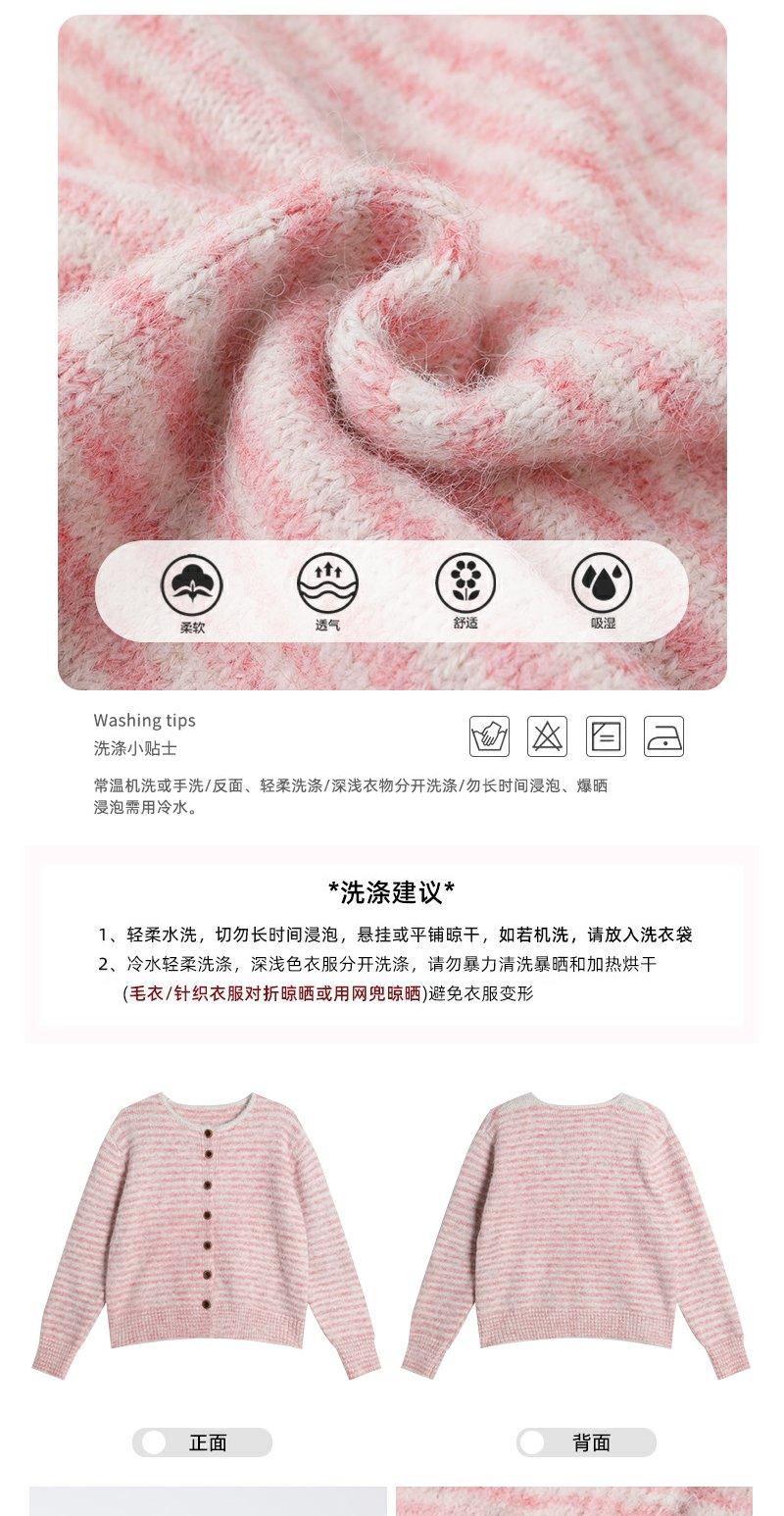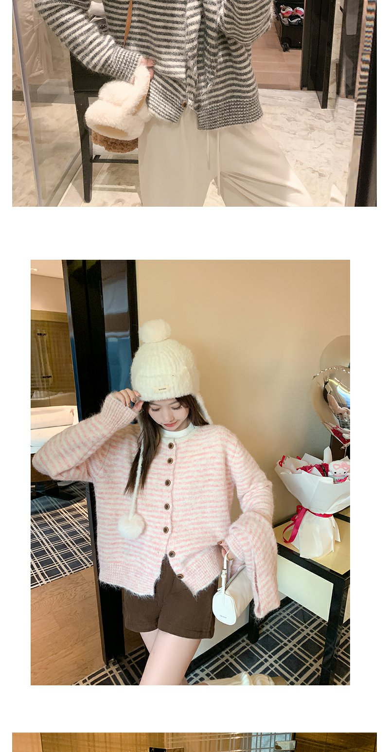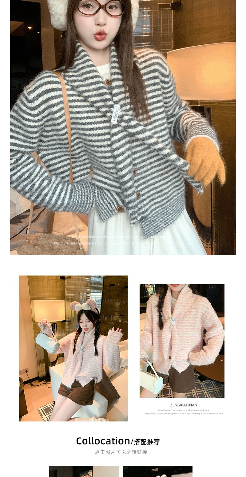 【169元任选2件】现货!条纹带围巾系扣毛衣开衫
