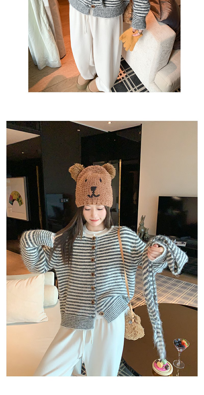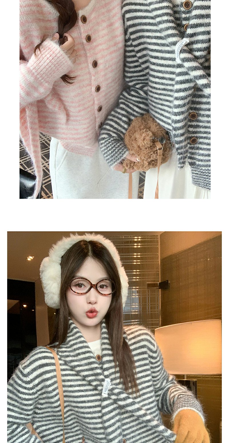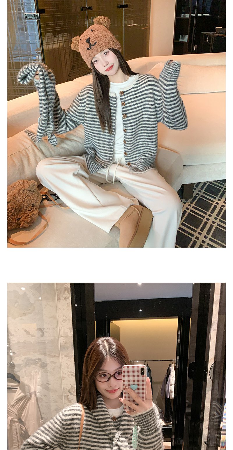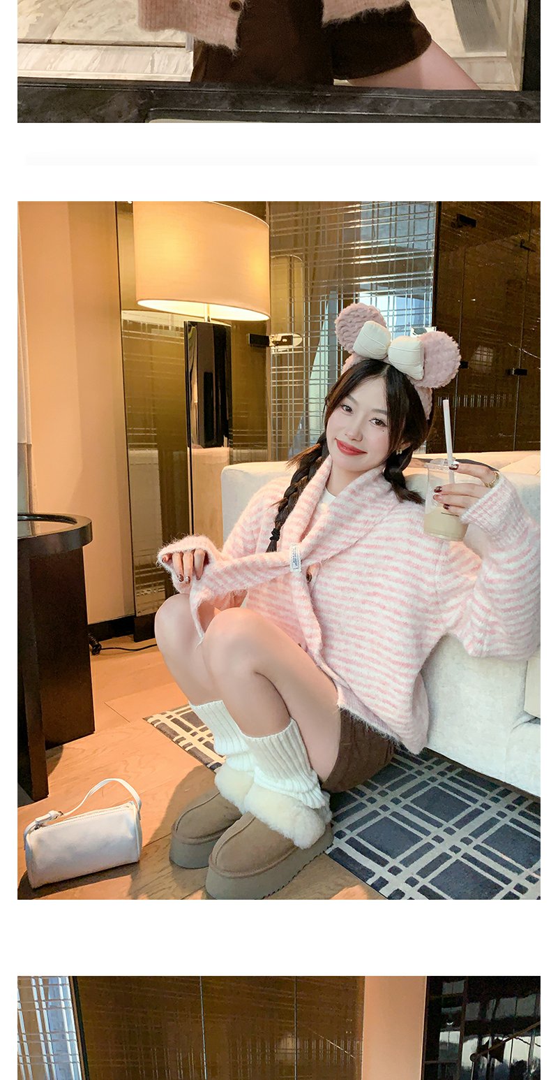 【169元任选2件】现货!条纹带围巾系扣毛衣开衫