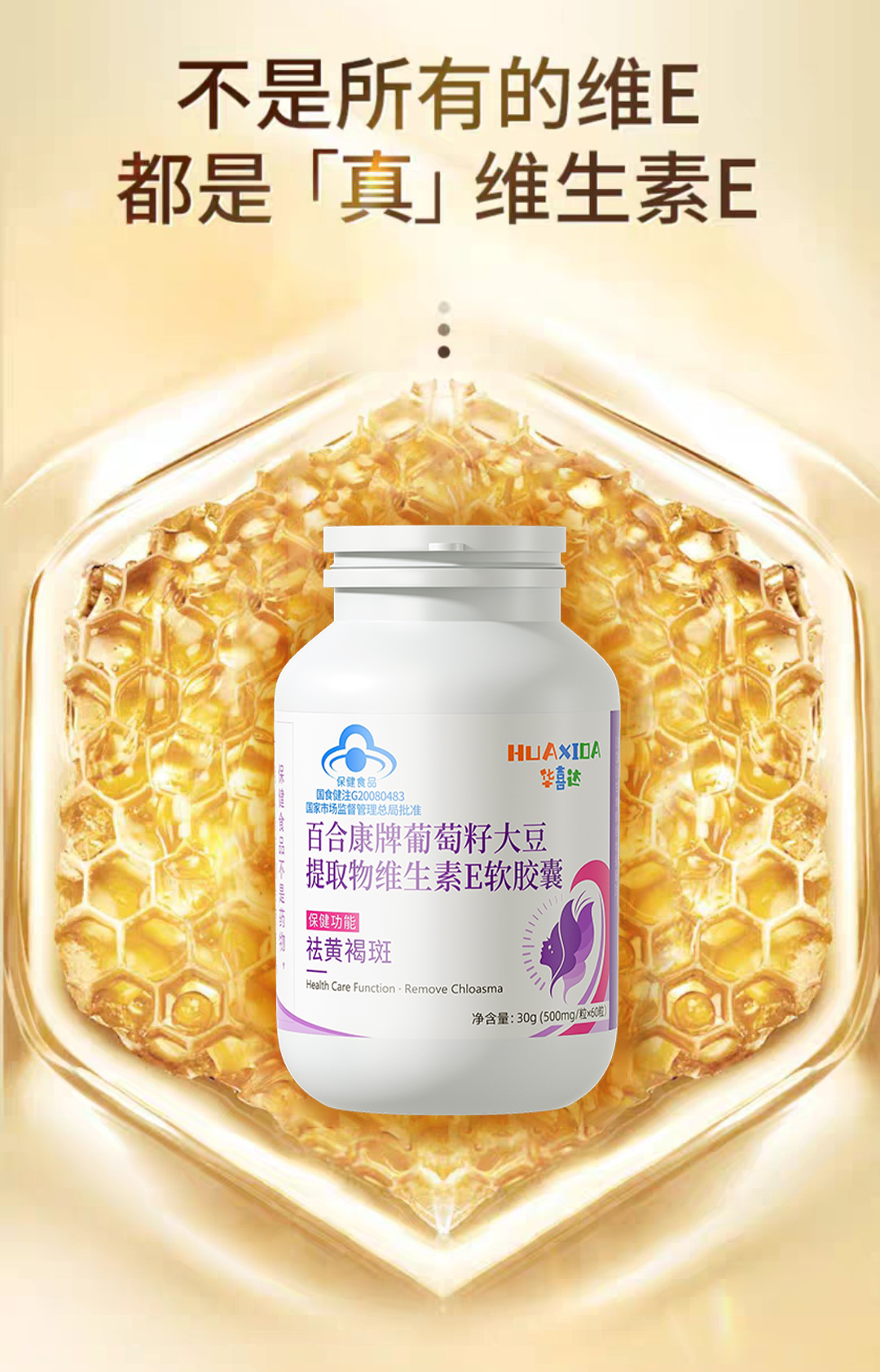 华喜达百合康牌葡萄籽大豆提取物维生素E软胶囊