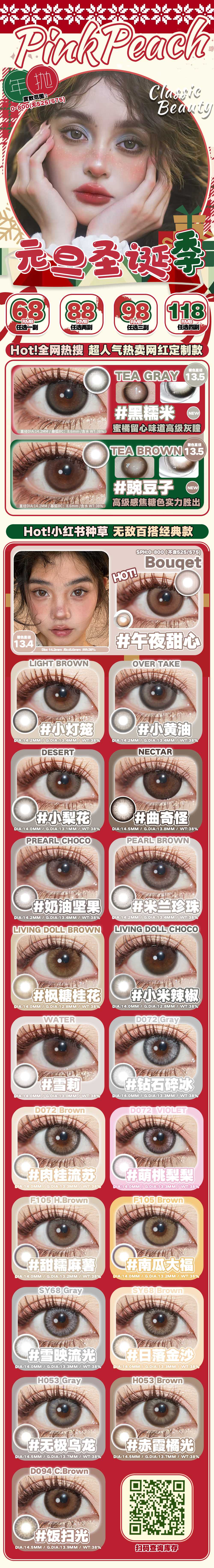 (热卖活动)(年抛)PinkPeach活动 68/副 88/2副 98/3副 118/4副 (0-800度)