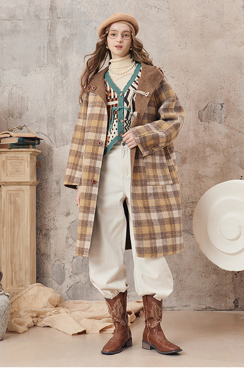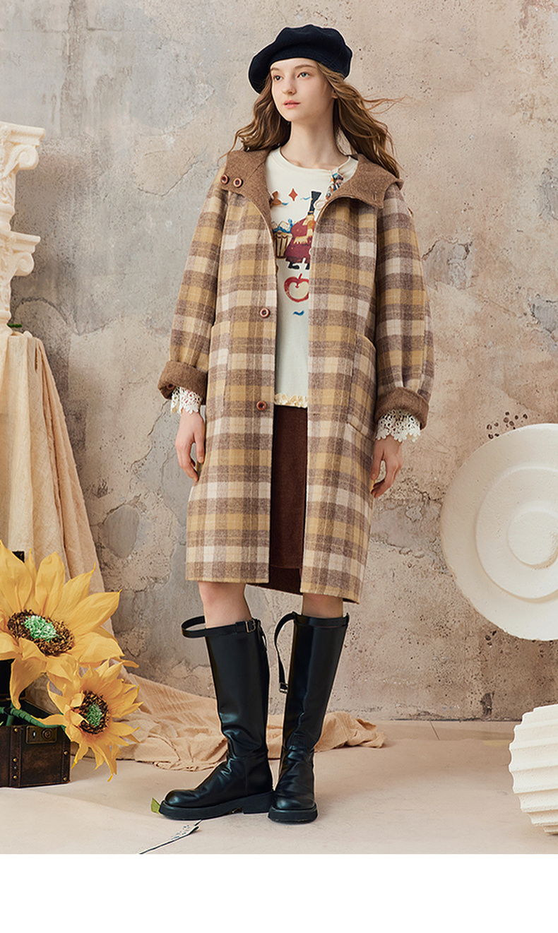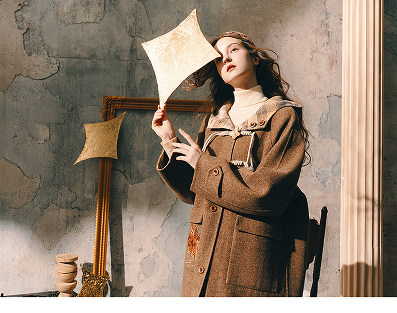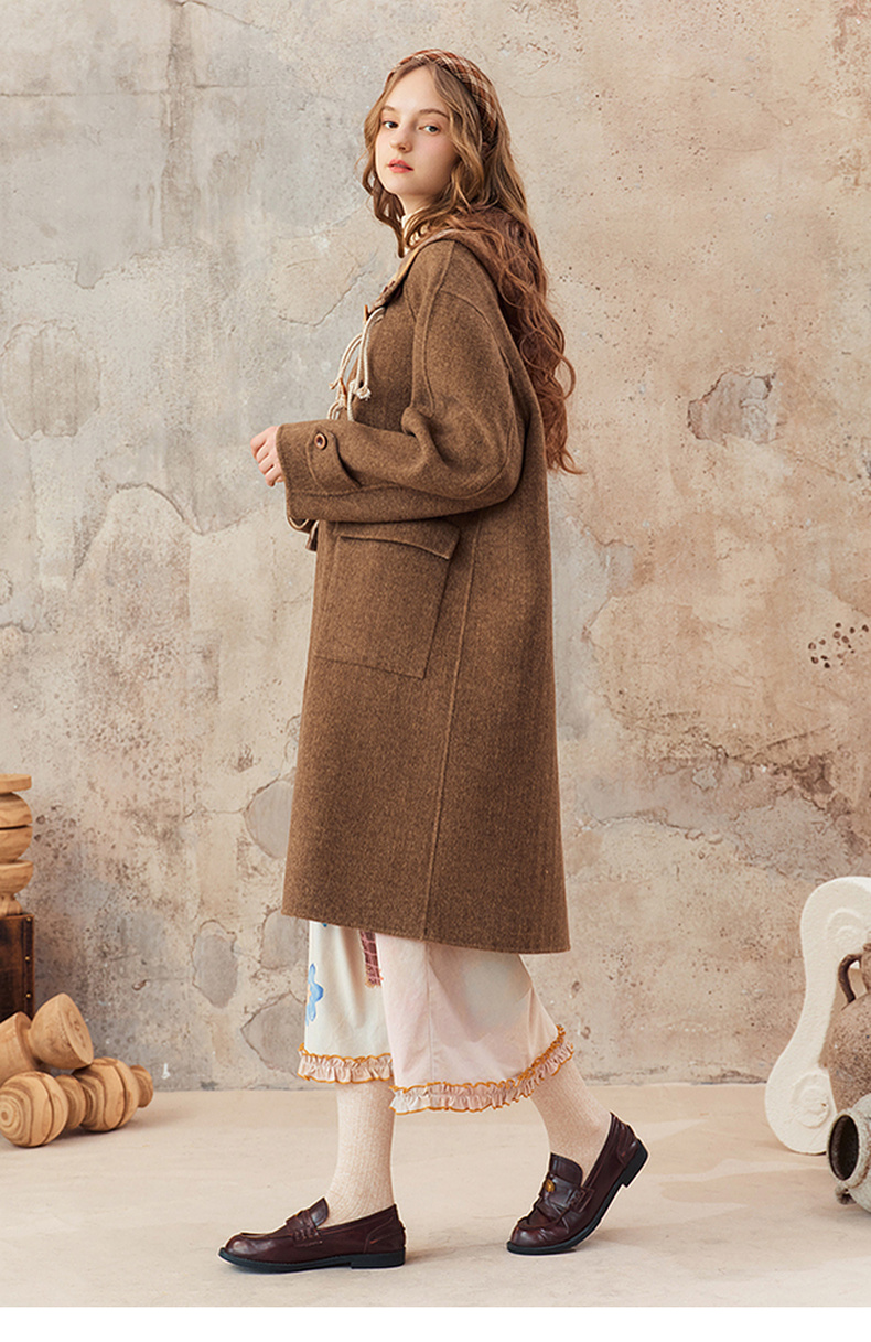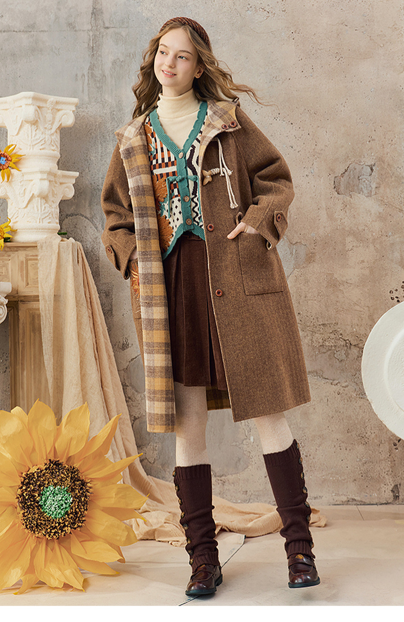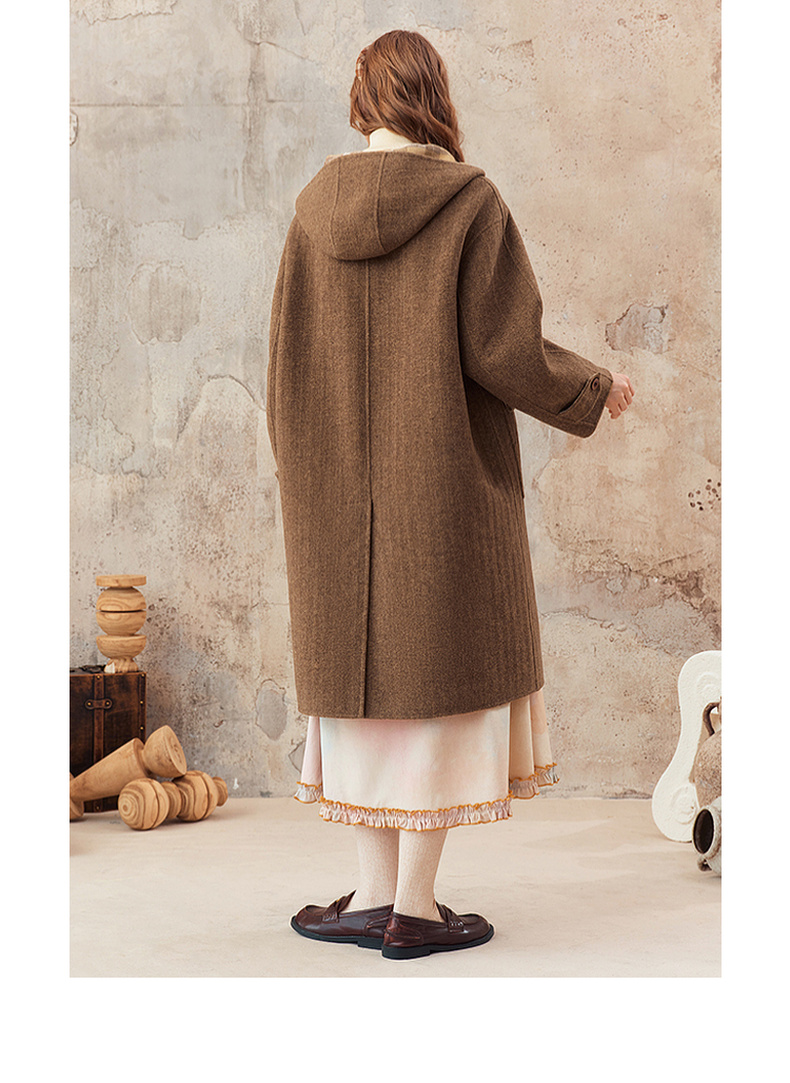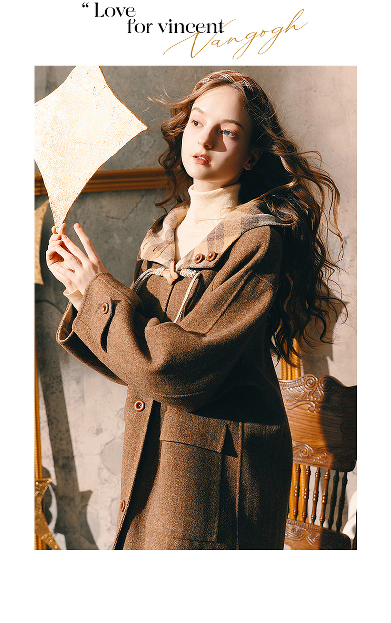 【暖冬内购】两三事梵高文艺 课间漫游 2025秋冬新款绣花两面穿连帽毛呢外套女