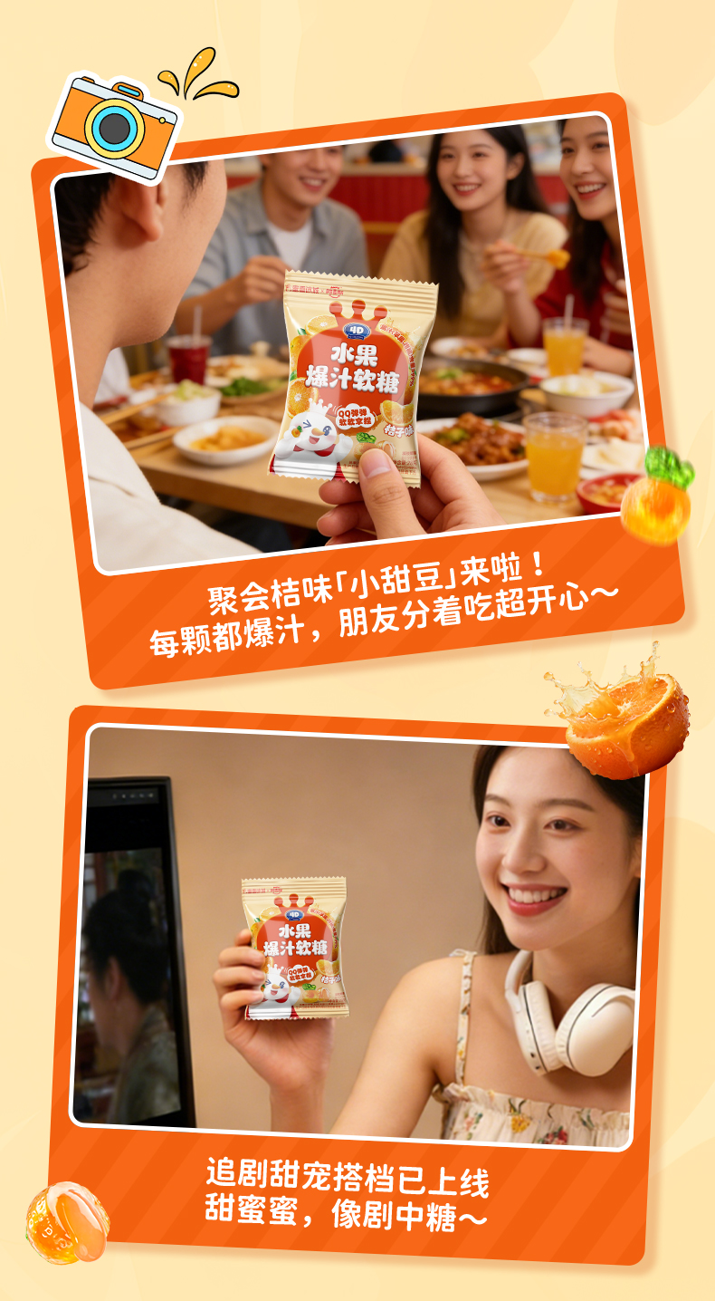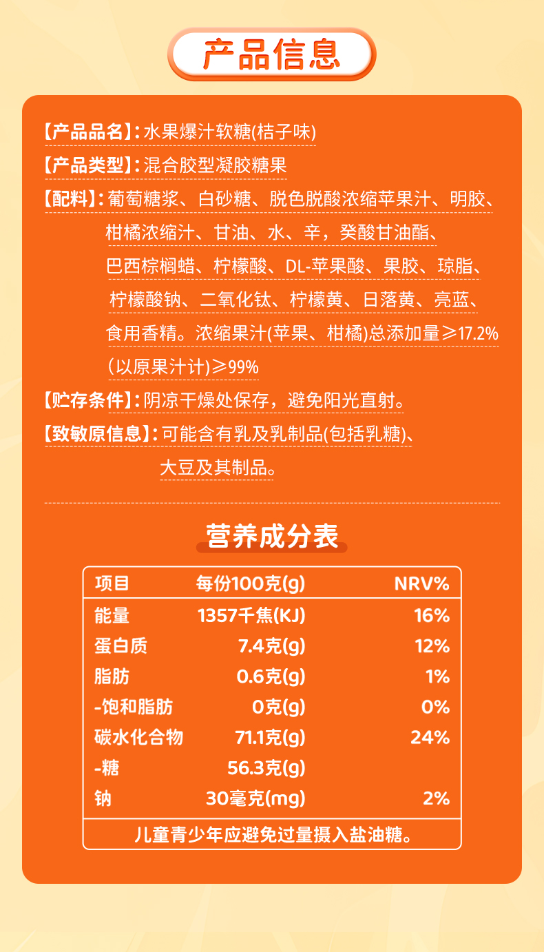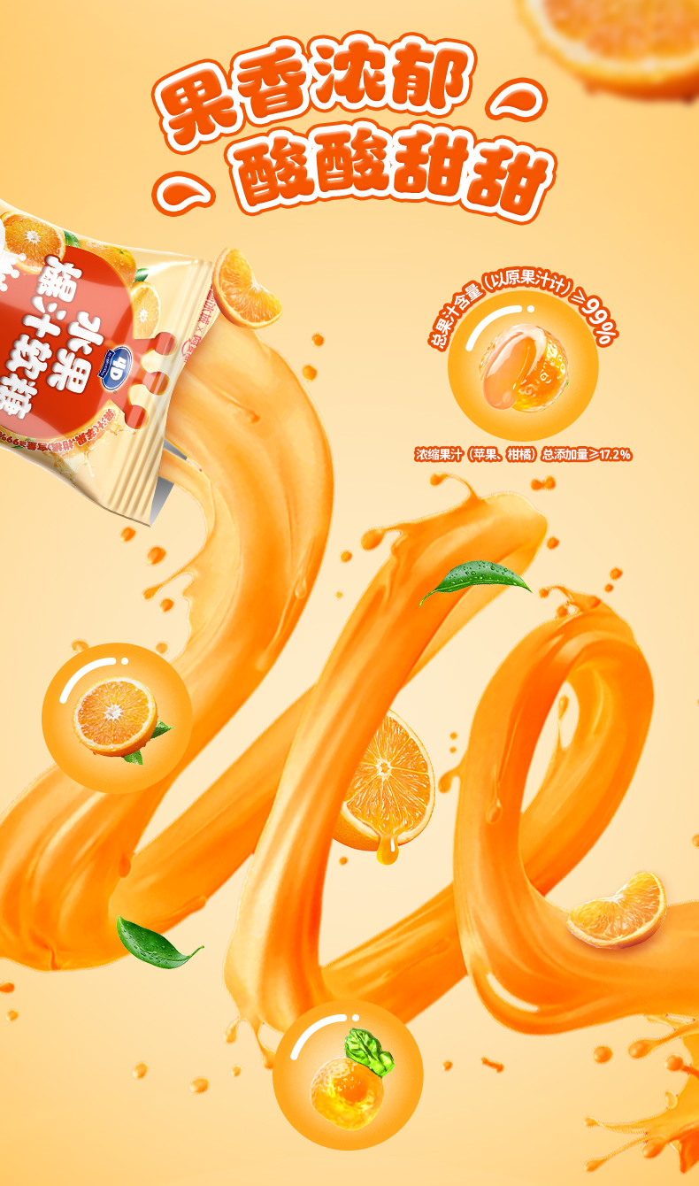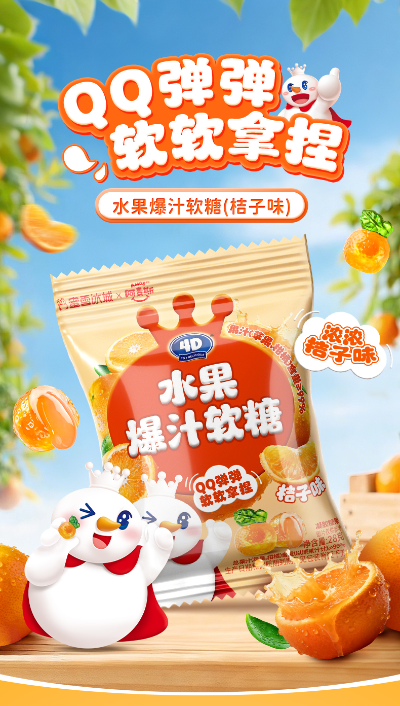 蜜雪冰城 水果爆汁软糖桔子味 零食