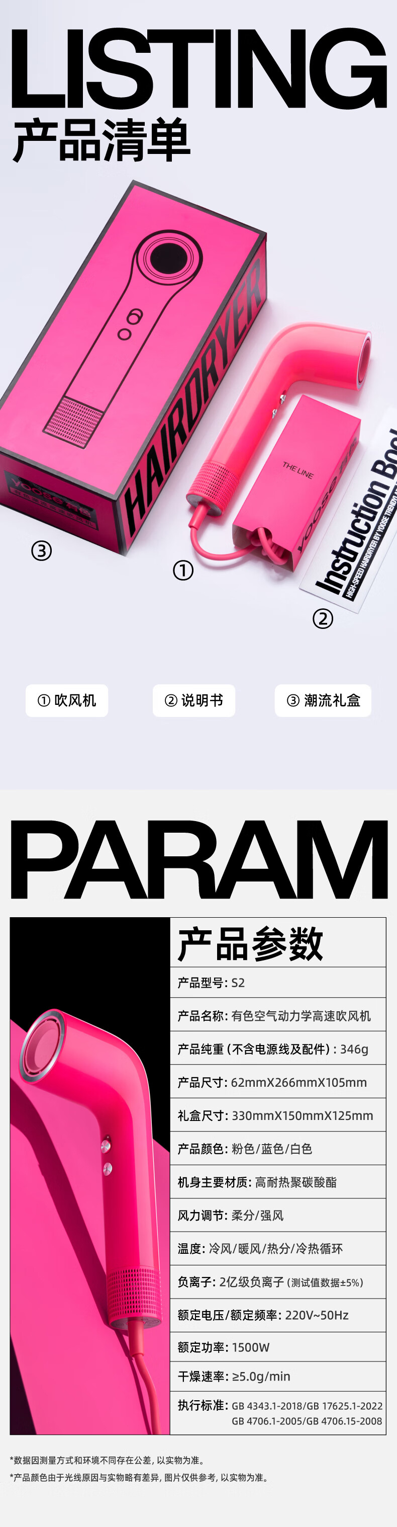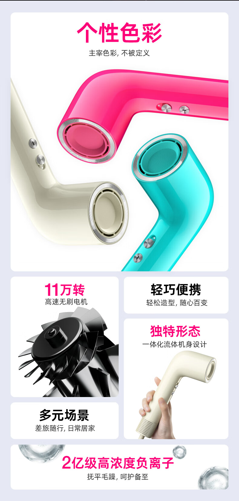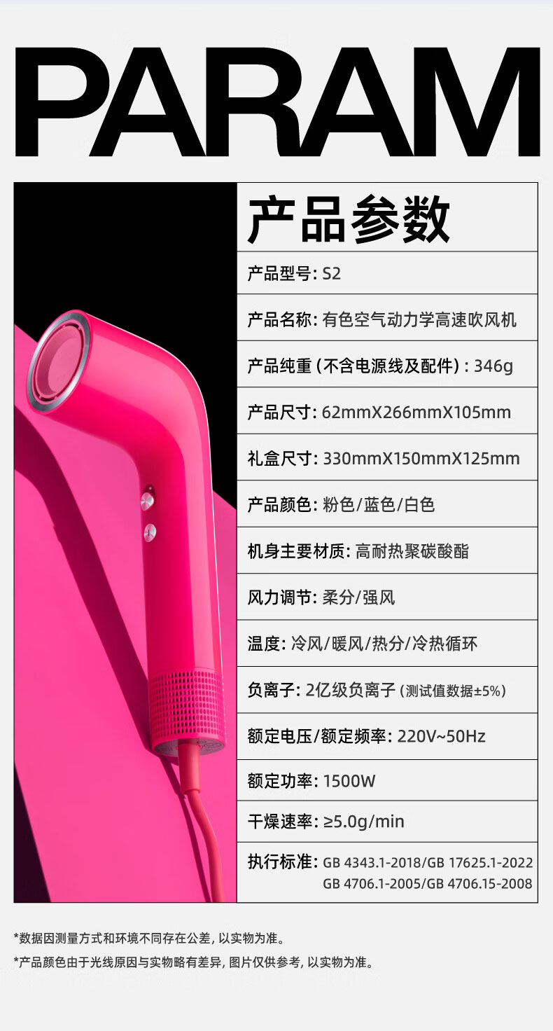 有色高速吹风机 负离子护发 大风力速干电吹风 S2