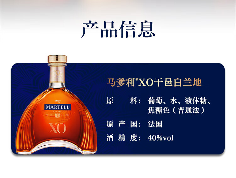 马爹利 (Martell) XO 干邑白兰地 洋酒 法国进口 送礼佳选 XO 700mL 1瓶