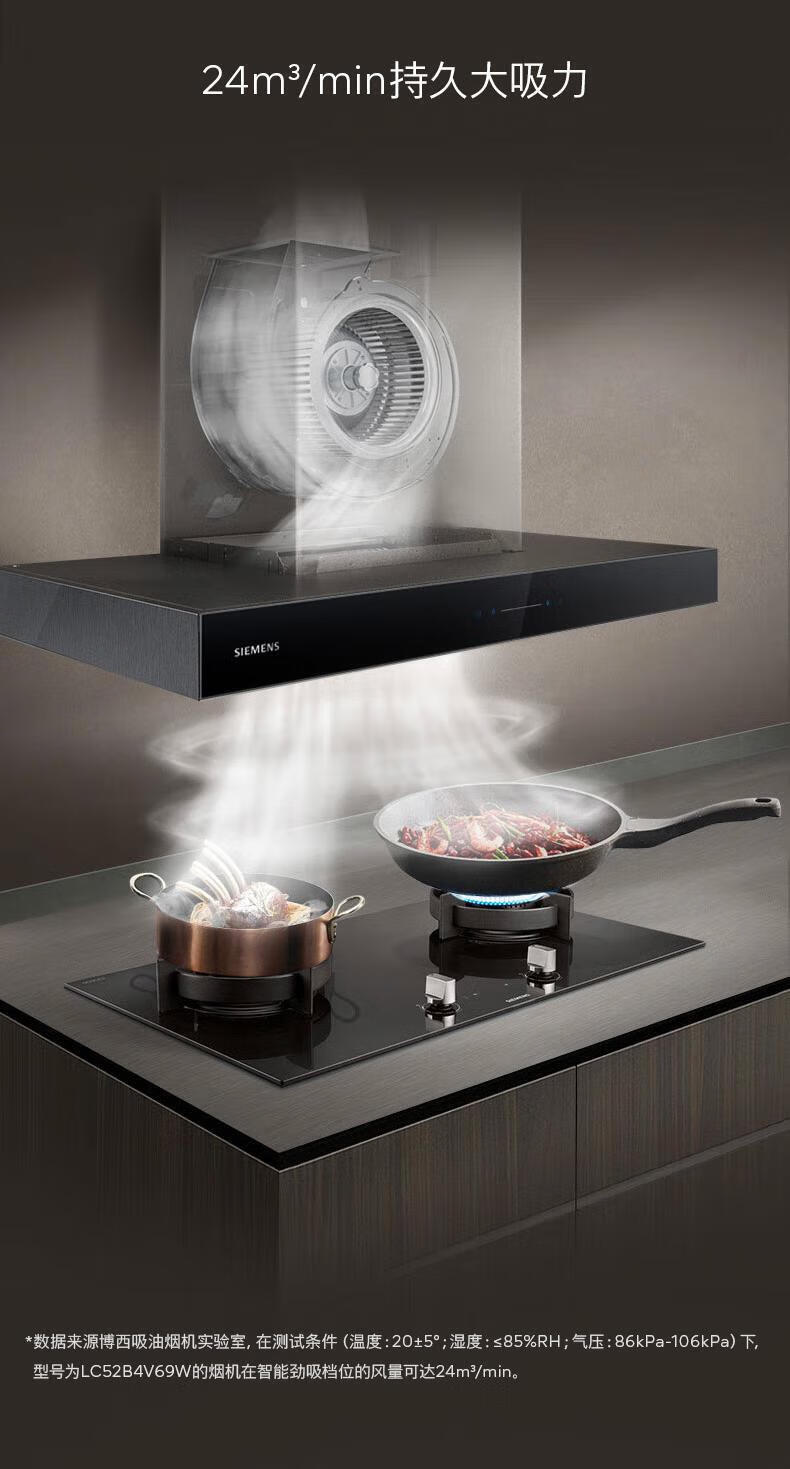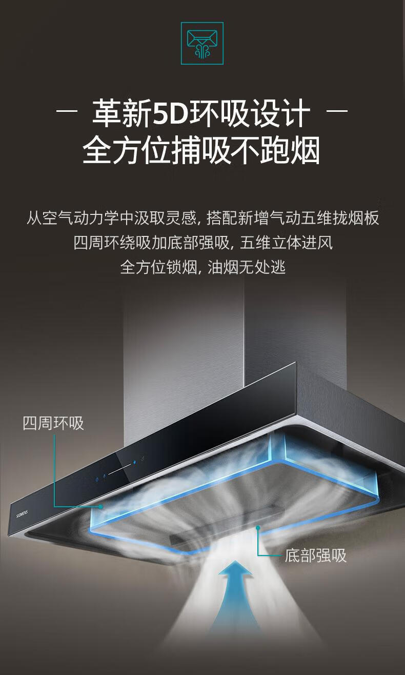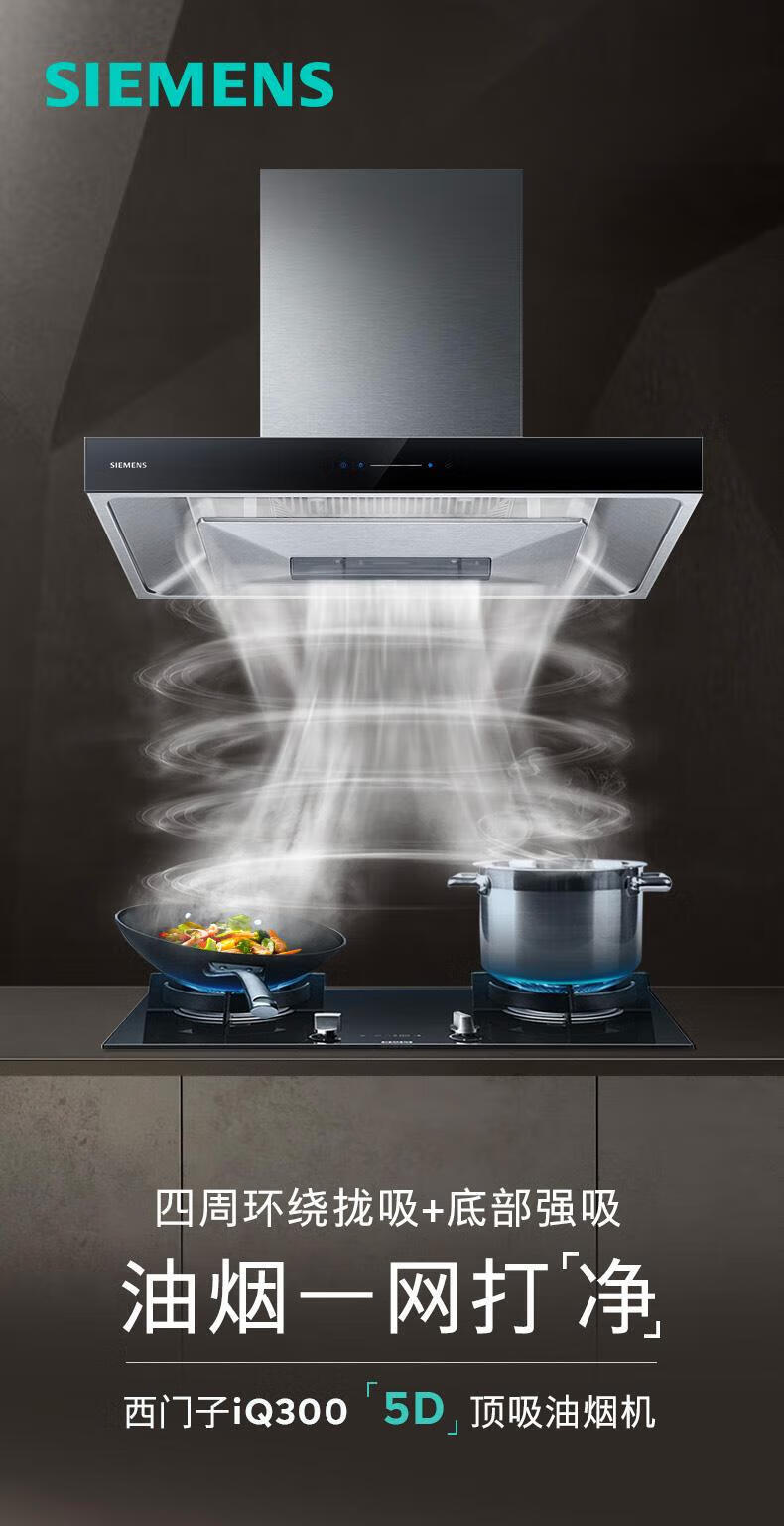 西门子(SIEMENS)欧式顶吸式家用抽油烟机24m³大吸力 5D环吸 全新自清洁 BLDC电机 LC52B4V69W