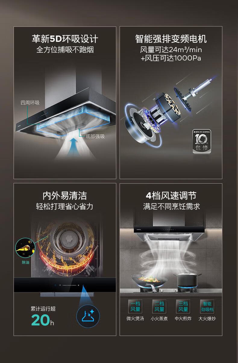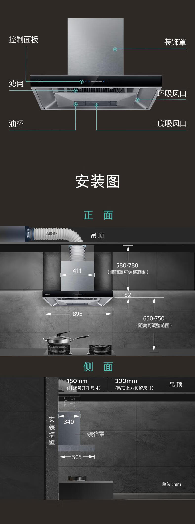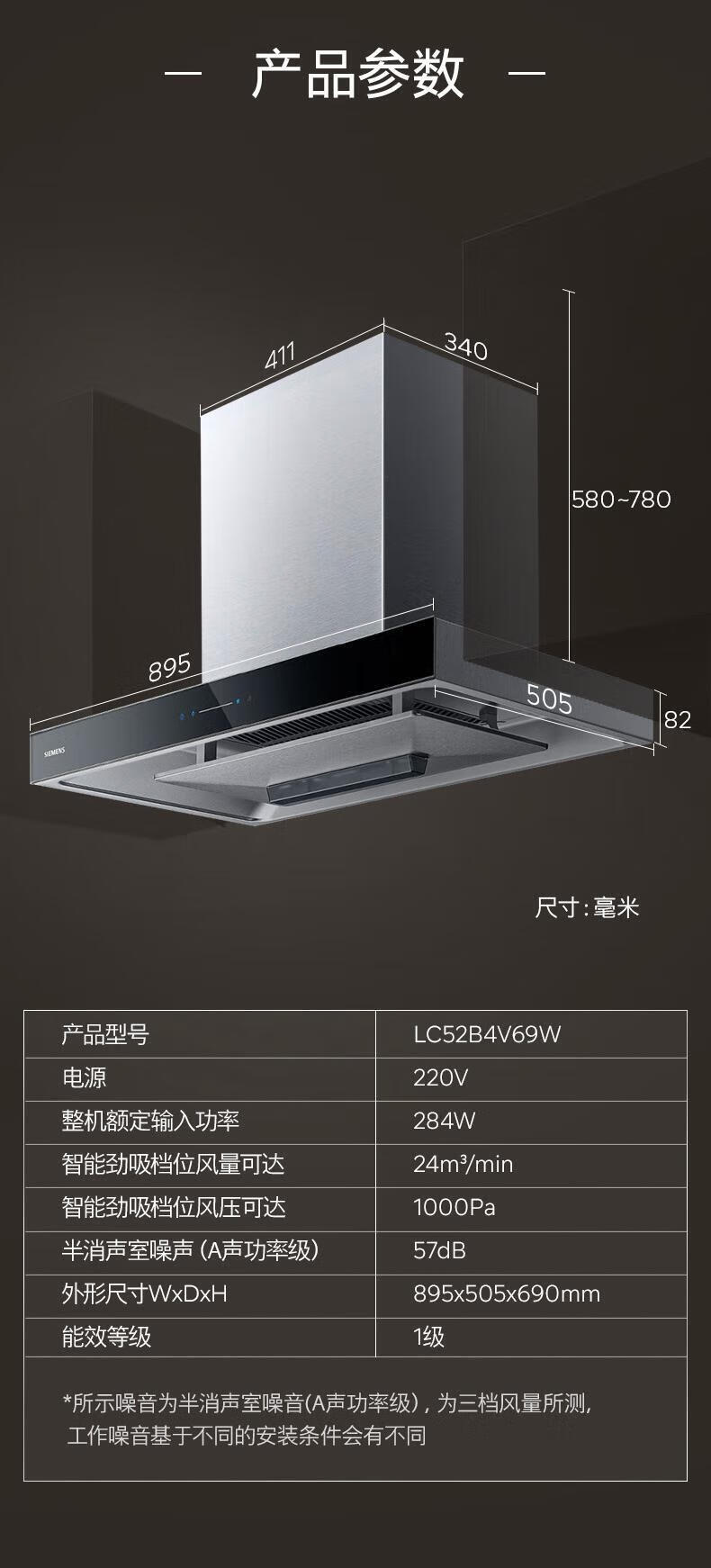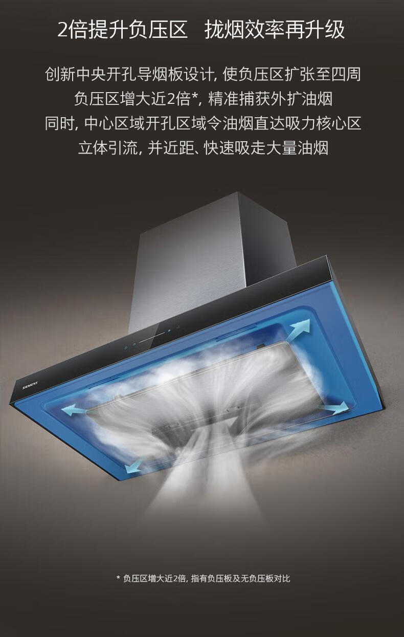 西门子(SIEMENS)欧式顶吸式家用抽油烟机24m³大吸力 5D环吸 全新自清洁 BLDC电机 LC52B4V69W