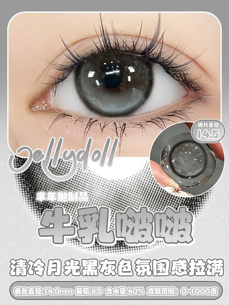 Jellydoll 牛乳啵啵 半年抛 两片 14.5mm 参考着色 14.0mm 基弧 8.5 含水 40% 新锐国货