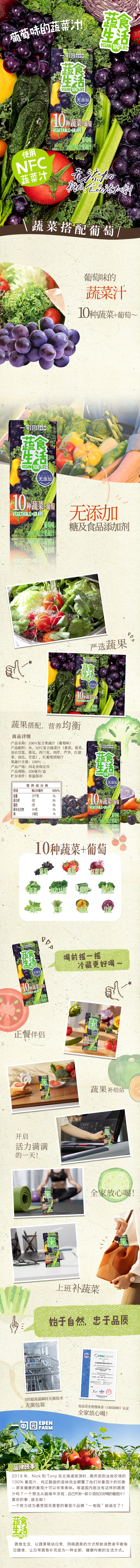 一甸园 蔬食生活100%复合果蔬汁(葡萄味)200ml*10
