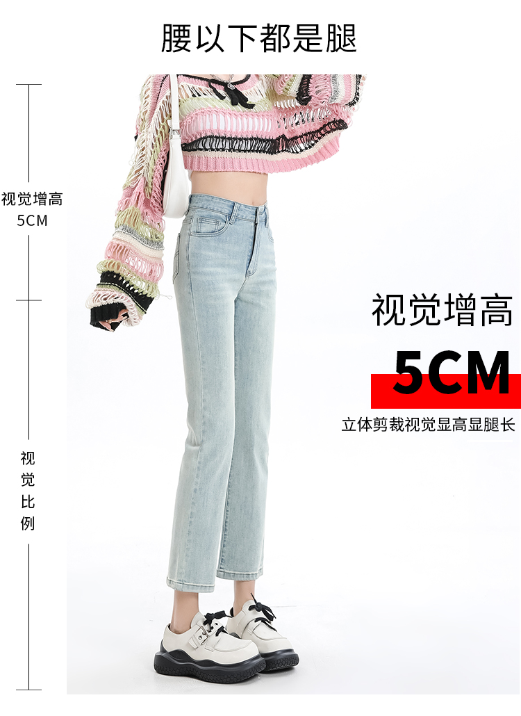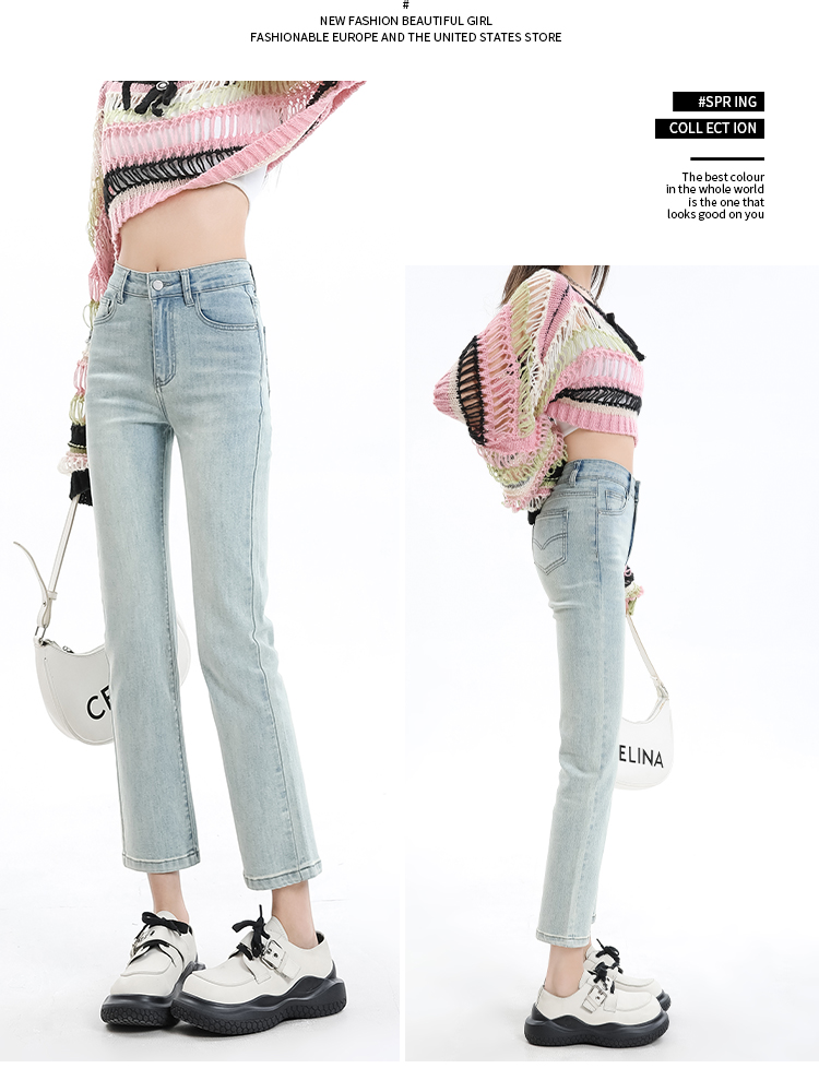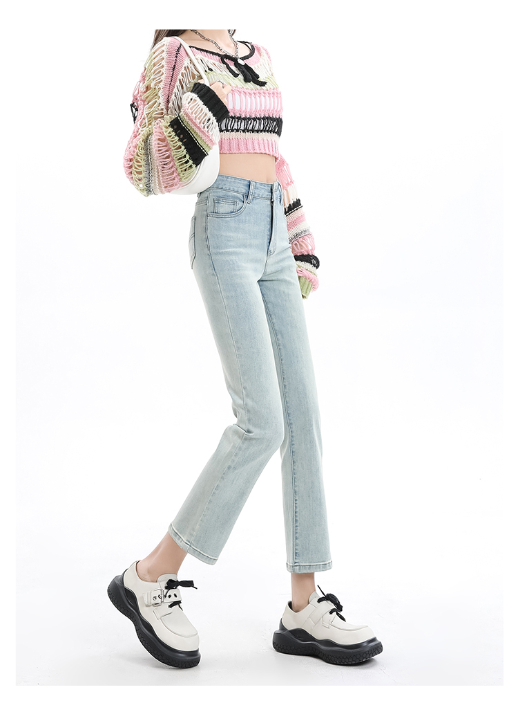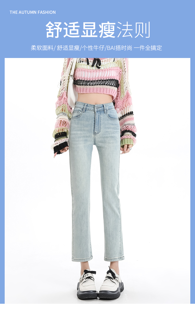 罗蒙女士直筒修身牛仔裤高腰显瘦九分裤时尚百搭休闲通勤牛仔裤子