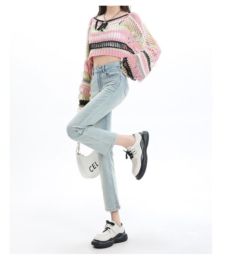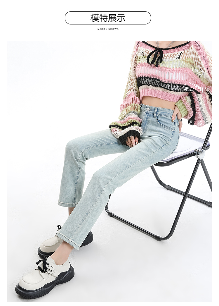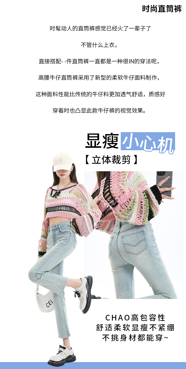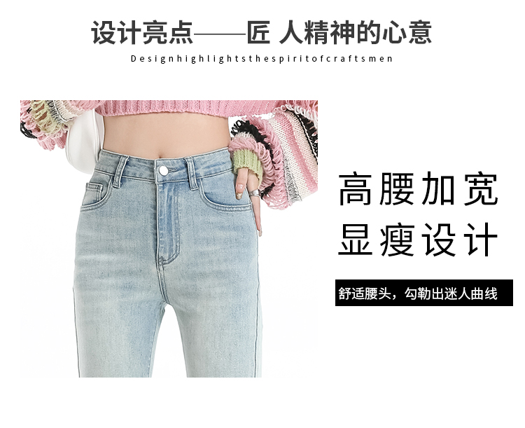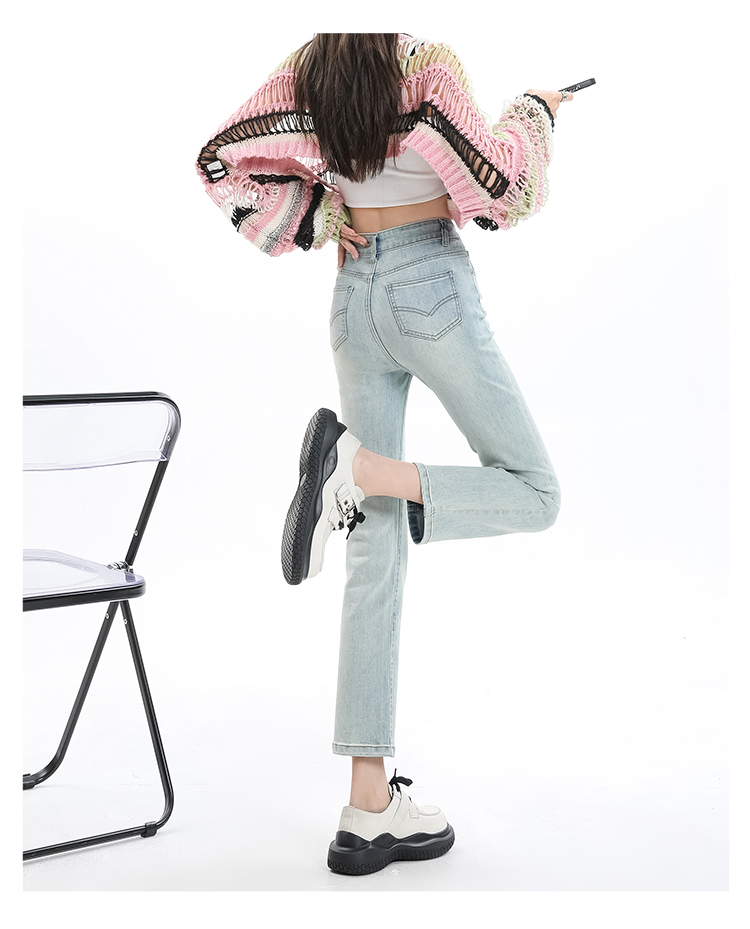 罗蒙女士直筒修身牛仔裤高腰显瘦九分裤时尚百搭休闲通勤牛仔裤子
