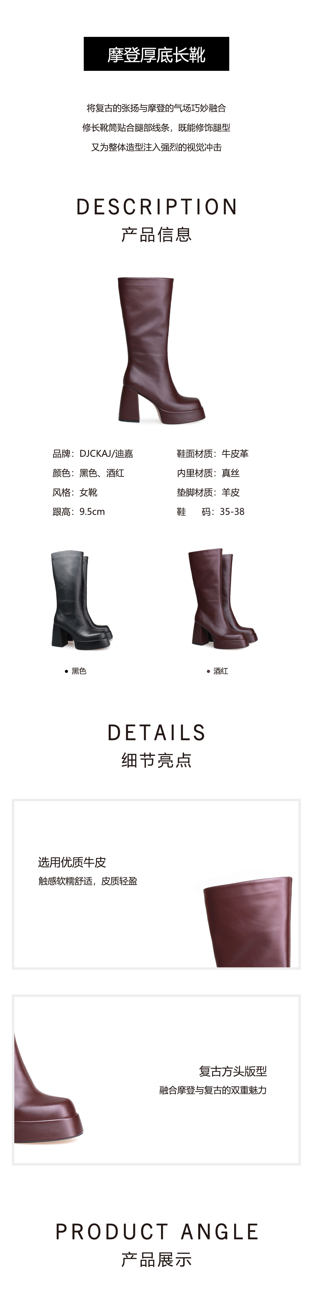 豪麟名鞋迪嘉女鞋牛皮革长靴DJHJA52WN009黑色